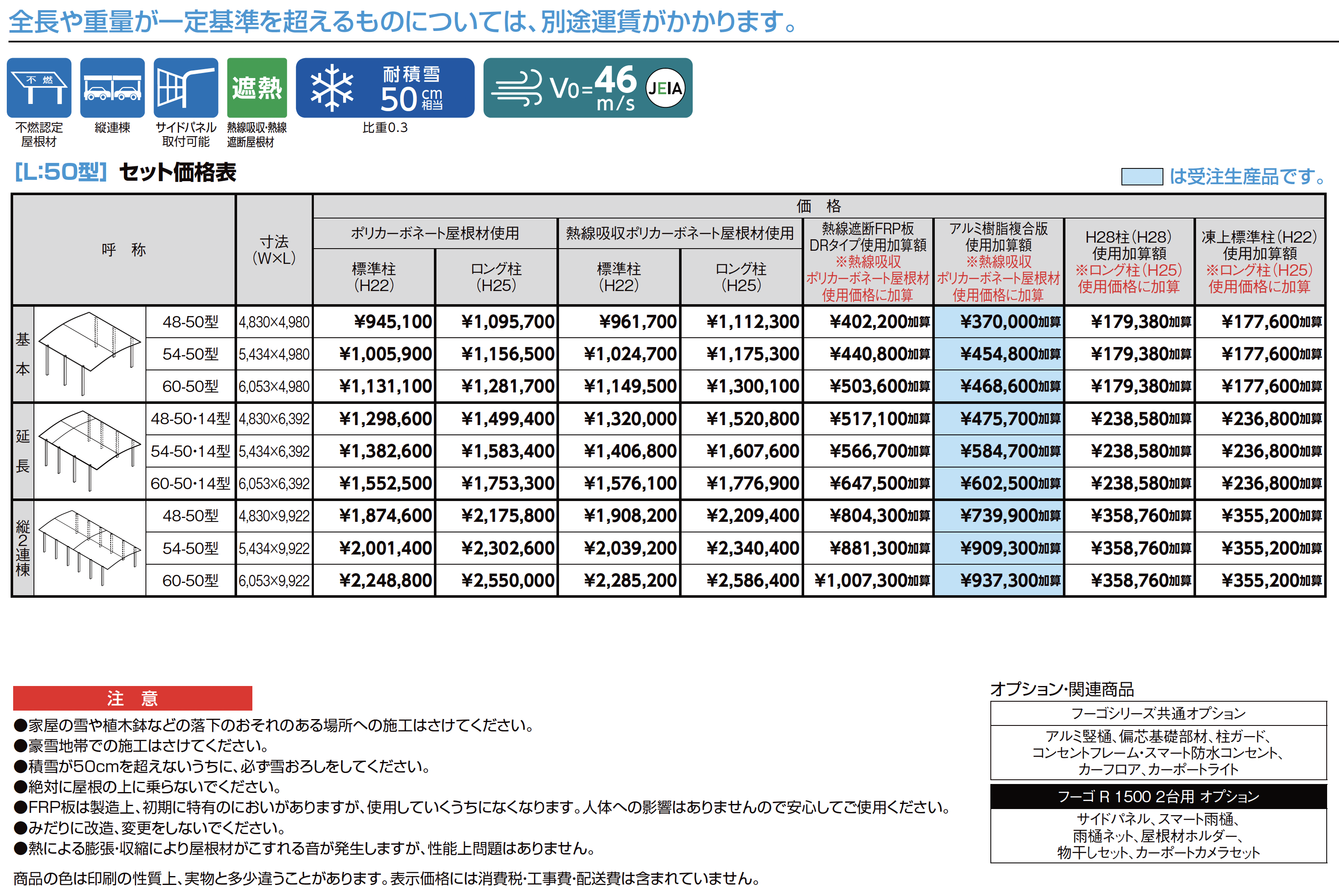 | 強度 | 耐積雪50cm相当 基準風速V0=46m/s |