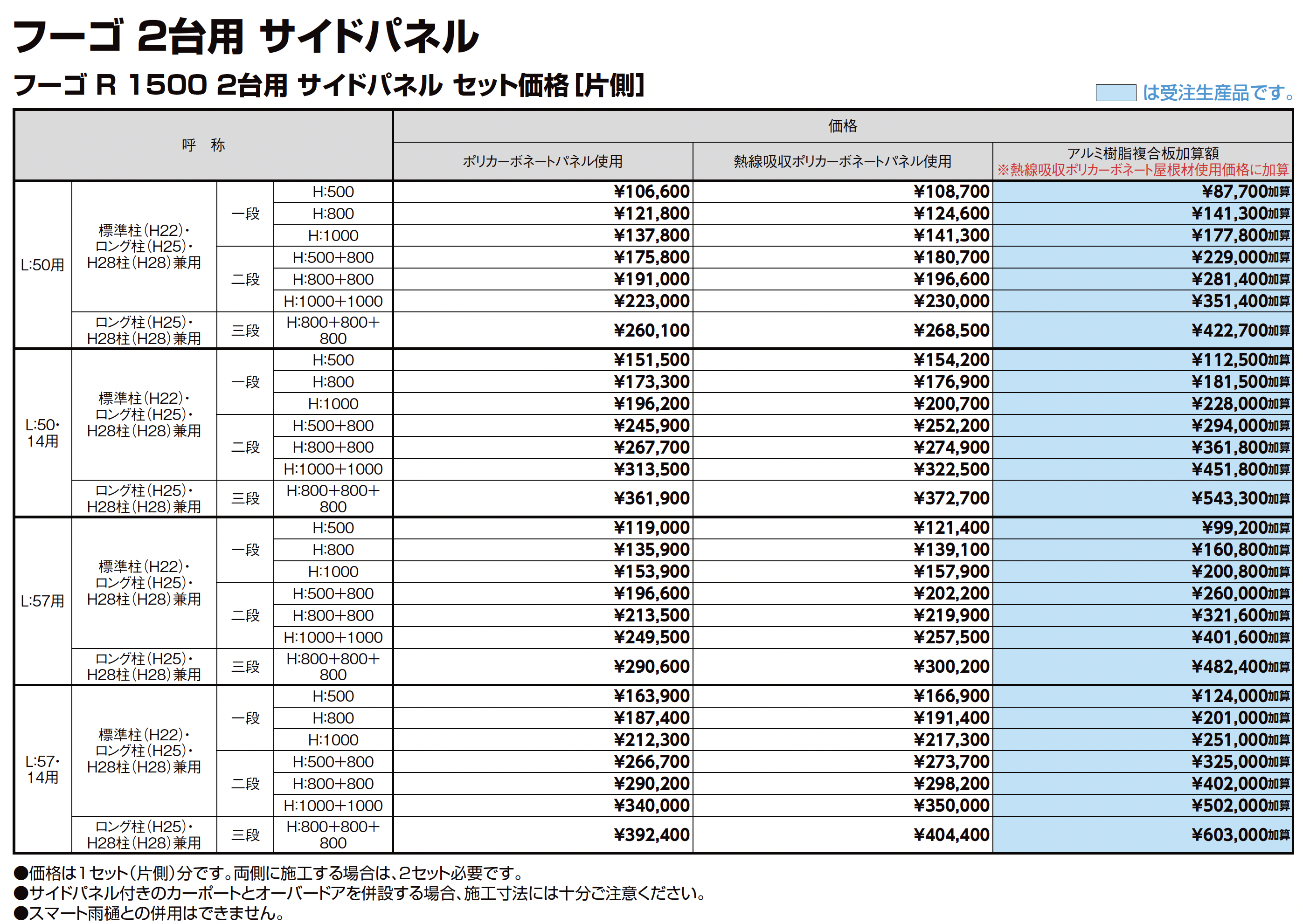 | 材質 | アルミ形材 ポリカーボネート板 熱線吸収ポリカーボネート板 熱線遮断FRP板DRタイプ アルミ樹脂複合板 |
