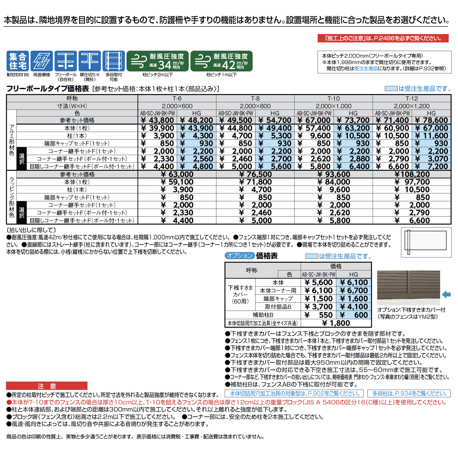 | 強度 | 耐風圧強度風速34m/秒相当 耐風圧強度風速42m/秒相当 |