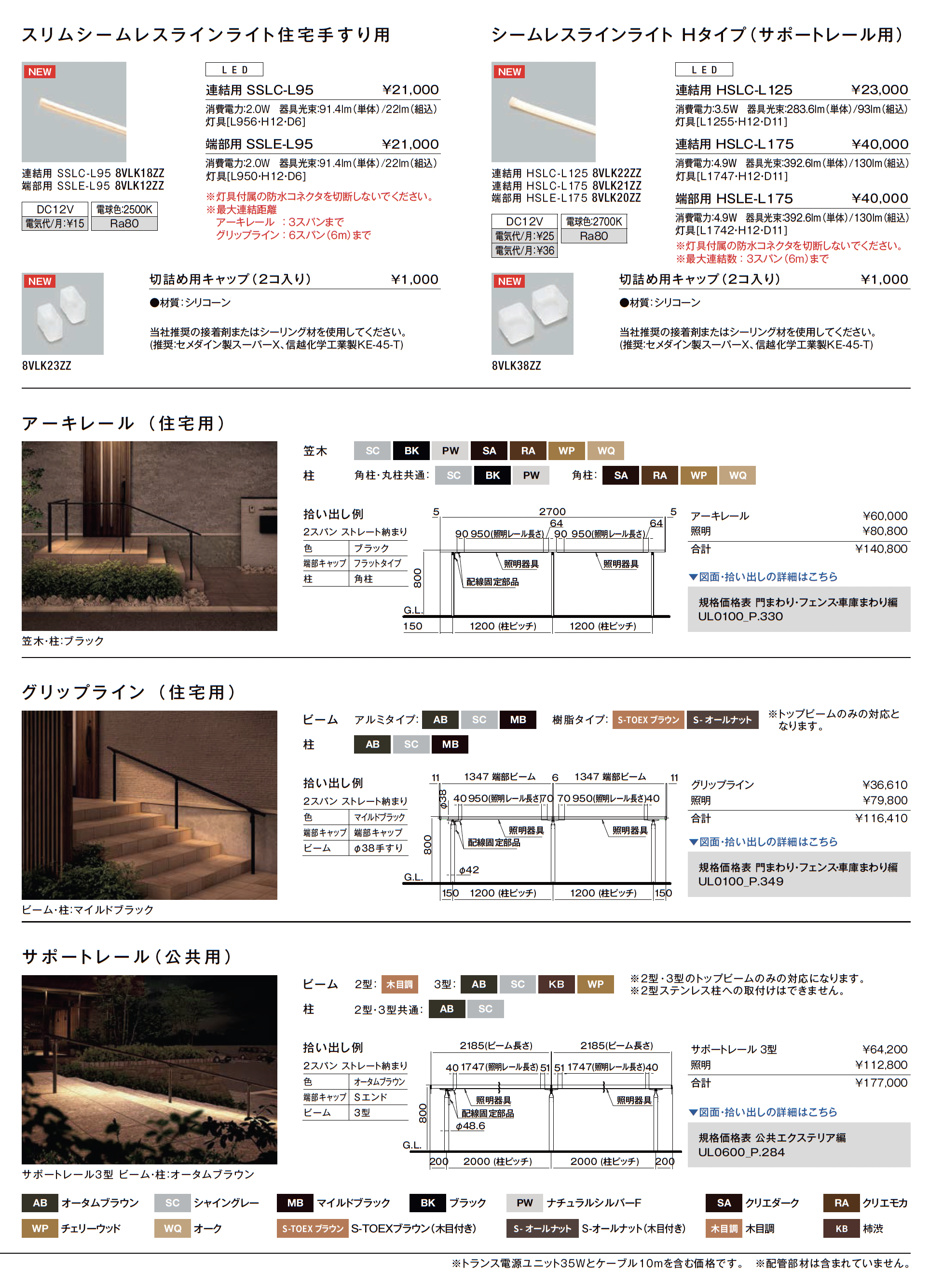 スリムシームレスラインライト住宅手すり用/シームレスラインライト Hタイプ(サポートレール用)