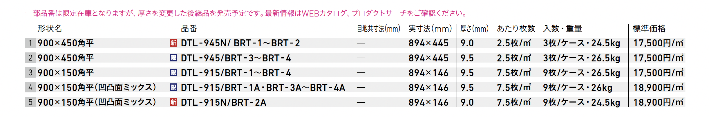 | 標準納期 | 即納対応:50㎡以下、100㎡以下(品番により) 品切れ時対応納期:納期確認 品番により生産区分が異なる場合がございます。 |