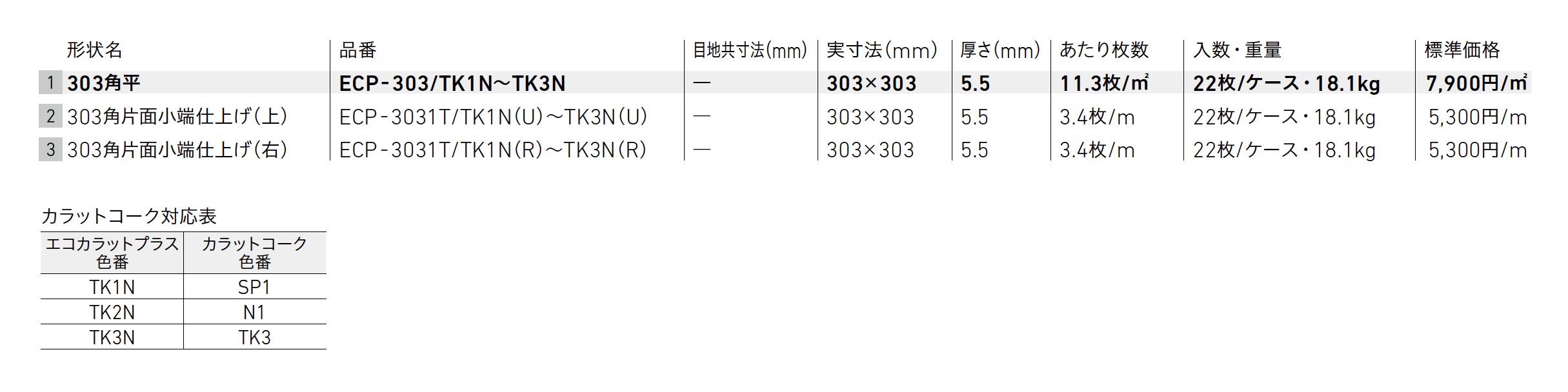 | 標準納期 | 即納対応:50㎡以下 品切れ時対応納期:納期確認 品番により生産区分が異なる場合がございます。 |