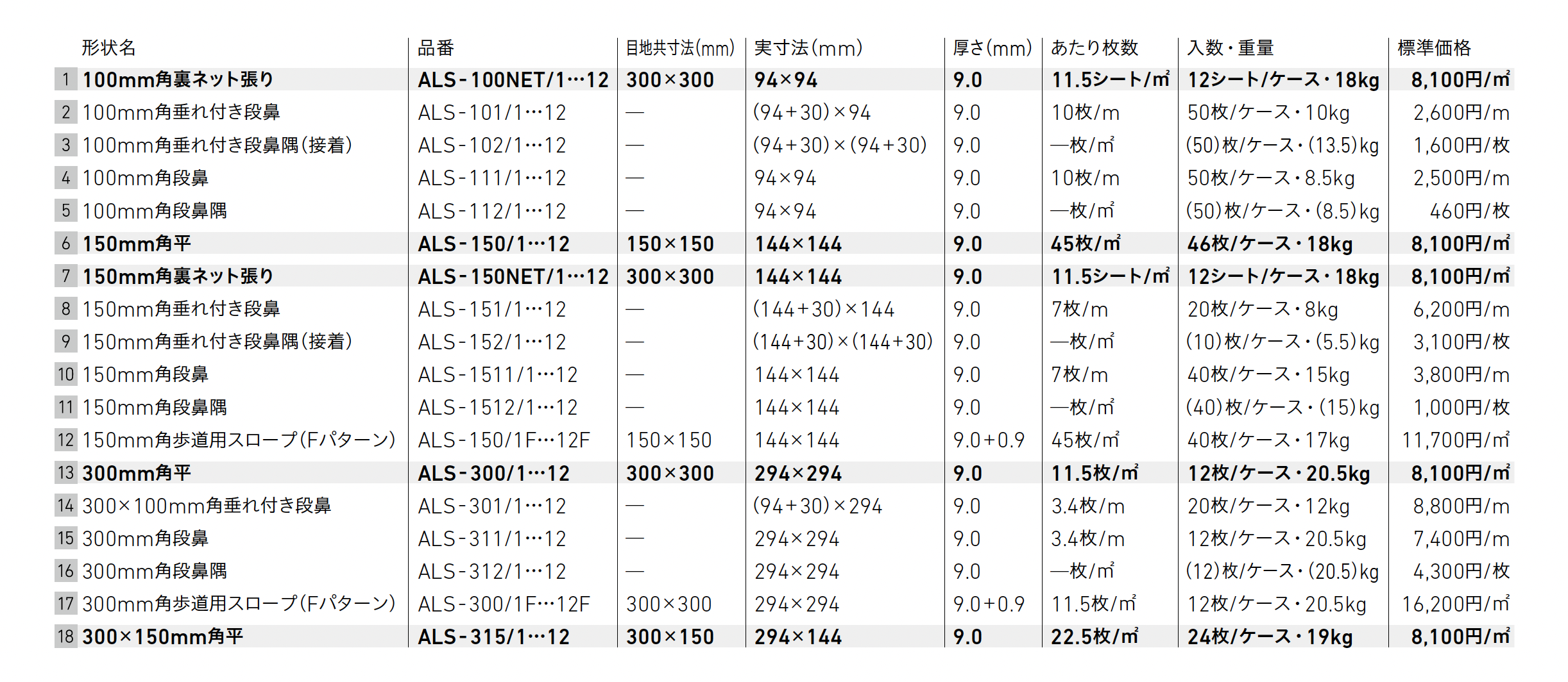 | 標準納期 | 即納対応:100㎡以下 品切れ時対応納期:納期確認 品番により生産区分が異なる場合がございます。 |