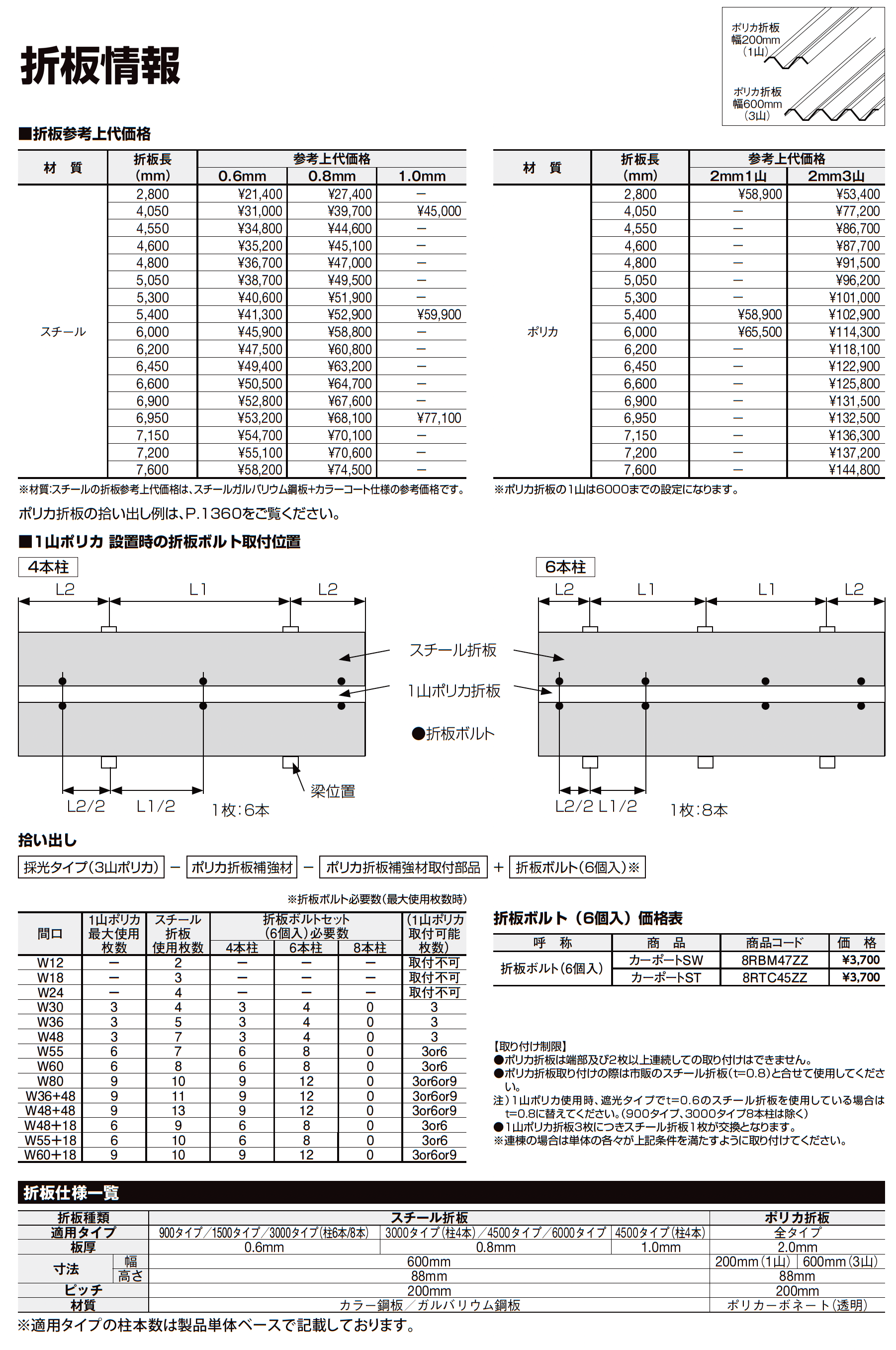 | 材質 | アルミ形材 スチール折板 ポリカ折板 |