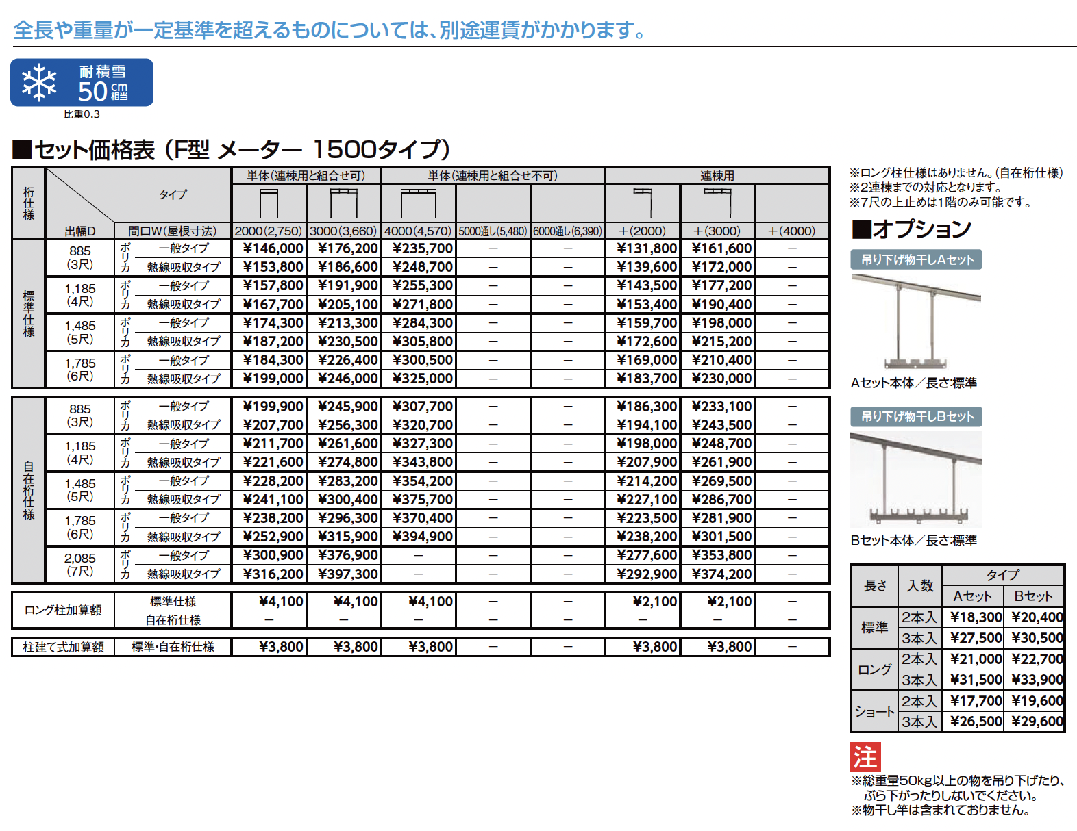 | 強度 | 耐積雪20cm相当 耐積雪50cm相当 |