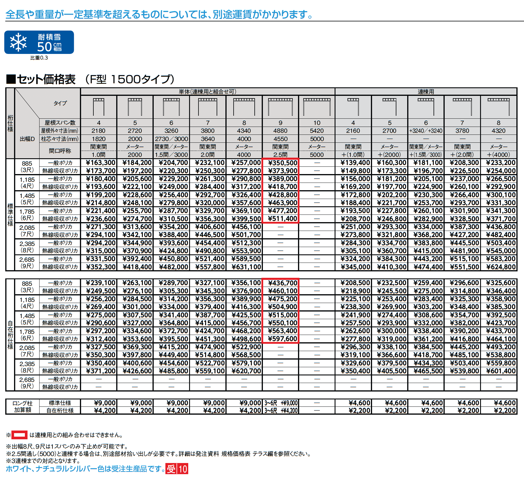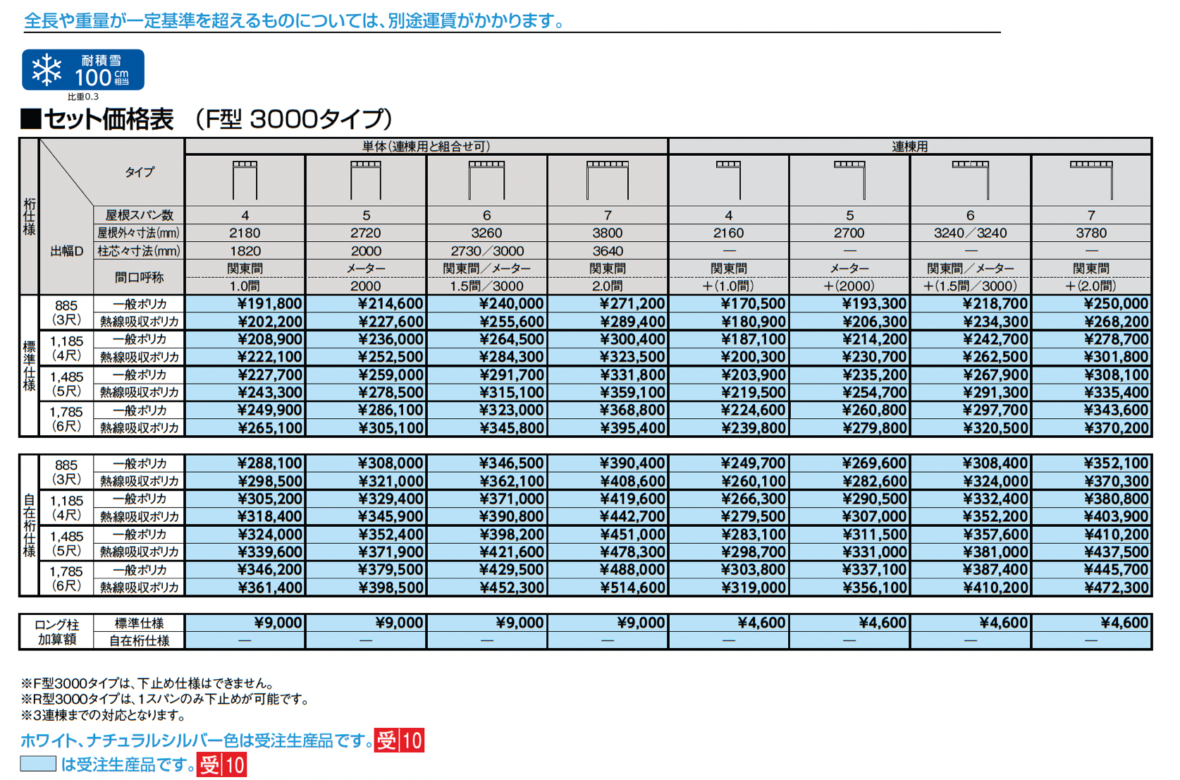 | 強度 | 耐積雪30cm相当 耐積雪50cm相当 耐積雪100cm相当 |