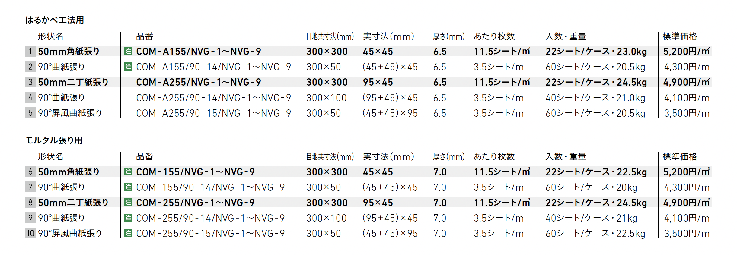 | 標準納期 | 即納対応:300㎡以下 品切れ時対応納期:納期確認 品番により生産区分が異なる場合がございます。 |