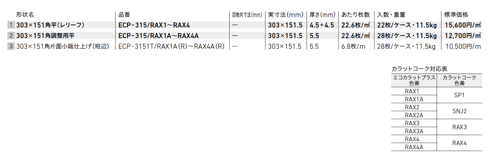 | 標準納期 | 即納対応:50㎡以下 品切れ時対応納期:納期確認 品番により生産区分が異なる場合がございます。 |