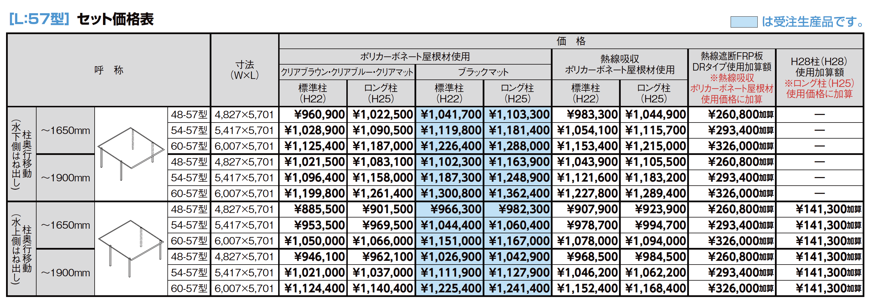 | 材質 | アルミ形材 ポリカーボネート板 熱線吸収ポリカーボネート板 熱線遮断FRP板DRタイプ |