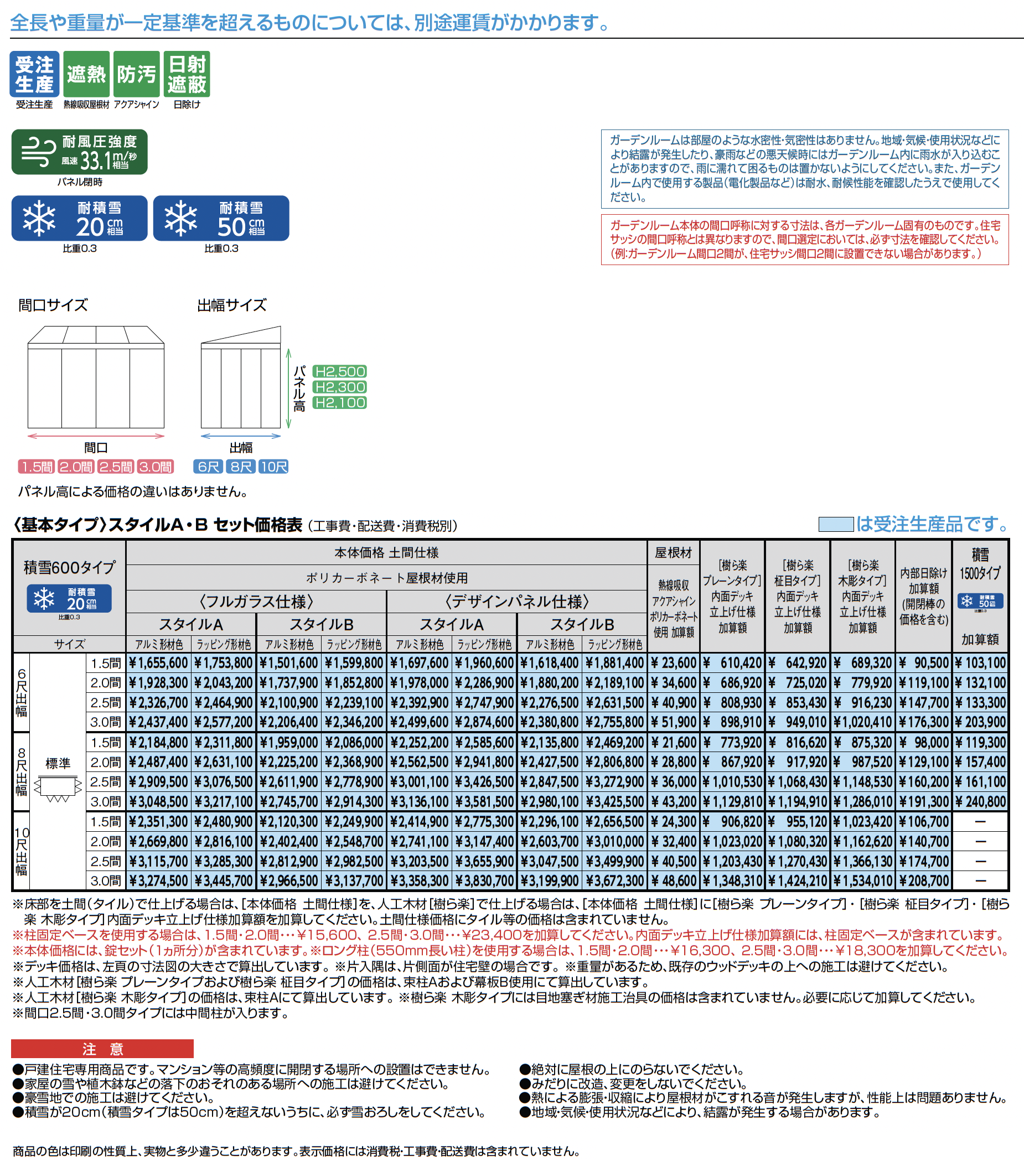 | 強度 | 耐積雪20cm相当 耐積雪50cm相当 耐風圧強度風速33.1m/秒相当 |
