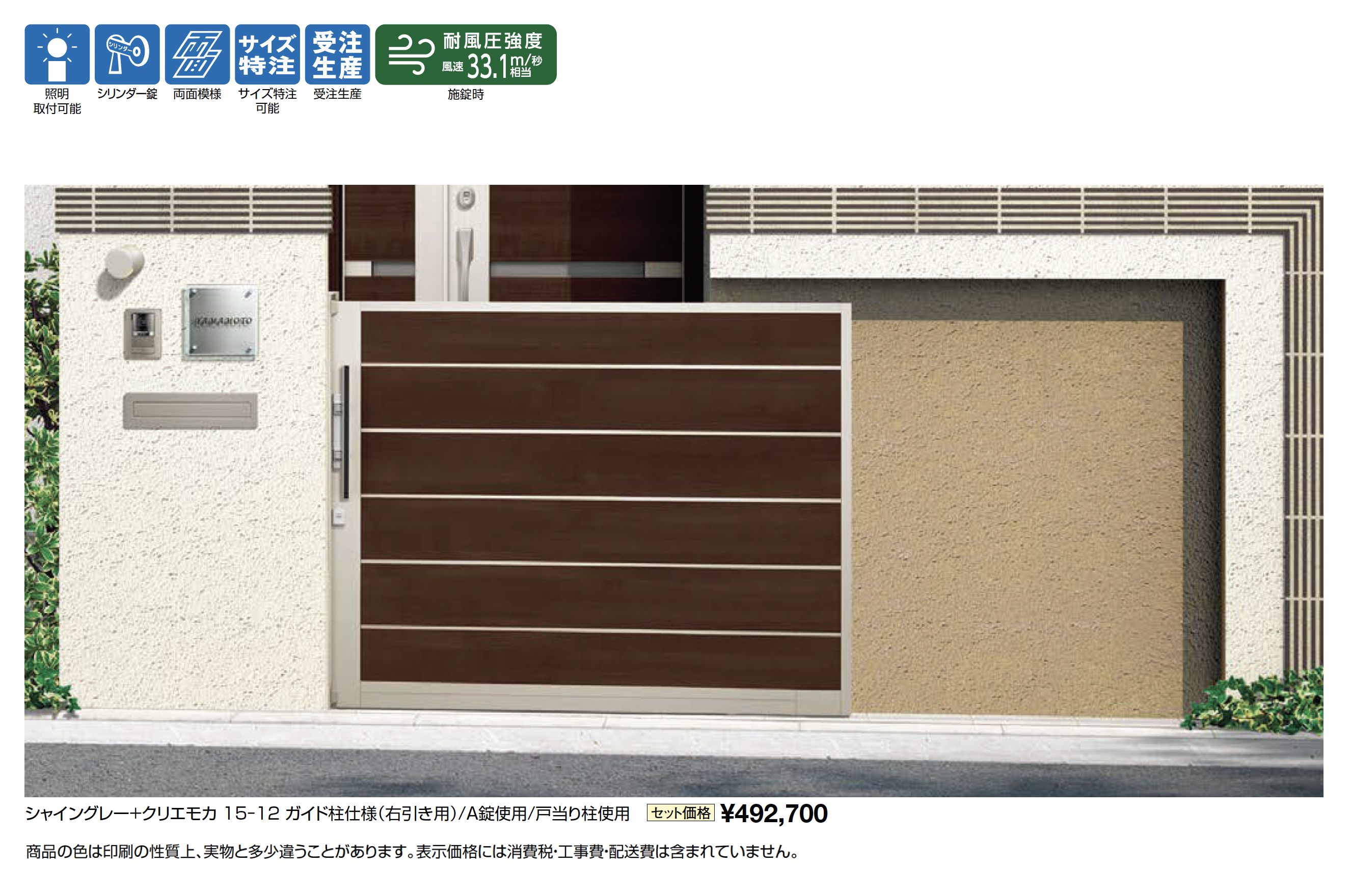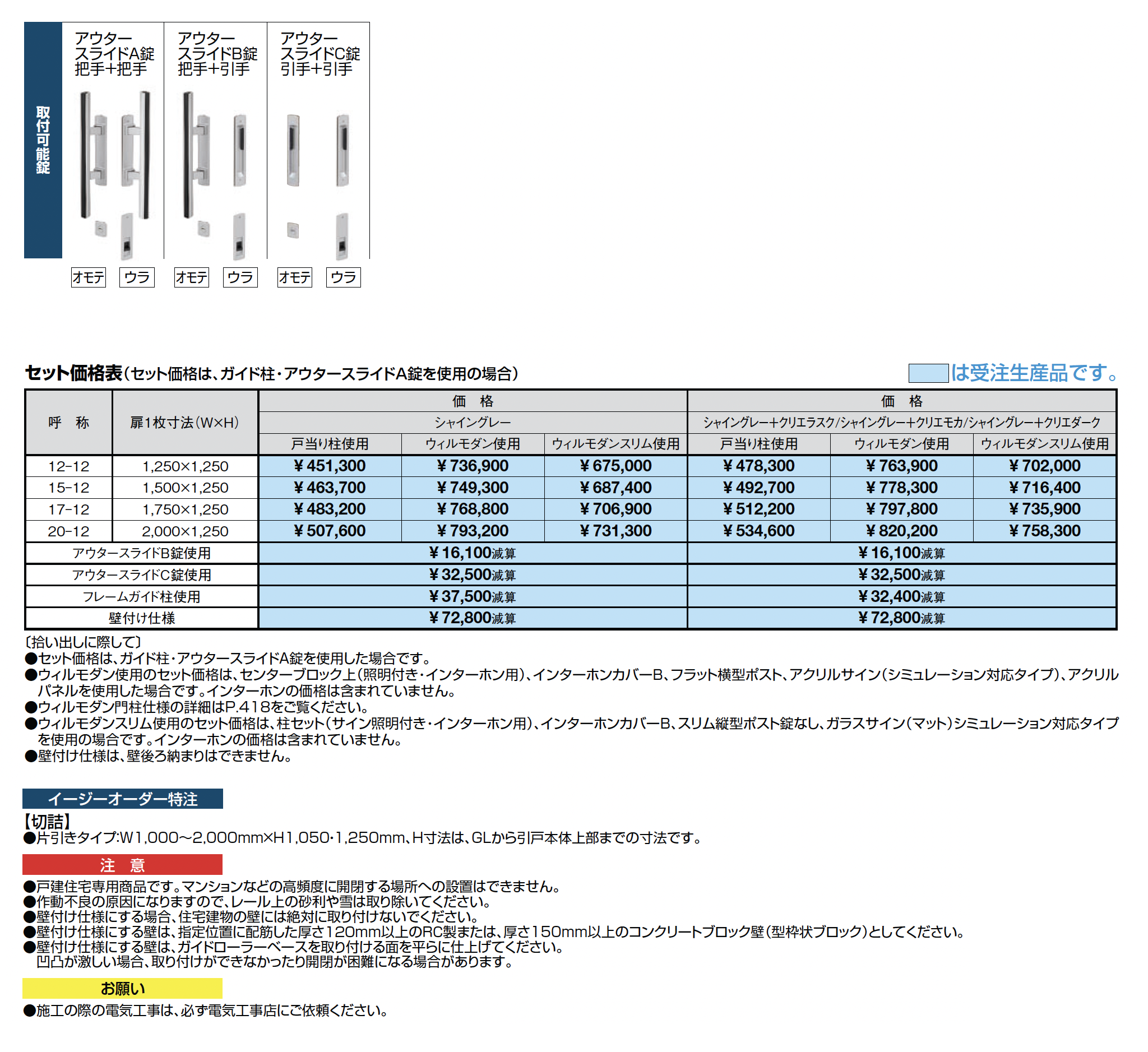 | デザイン | ガイド柱使用壁前納まり ガイド柱使用壁後ろ納まり ガイド柱使用壁横納まり ガイド柱壁付け仕様 壁付け仕様 目隠し・ルーバー |