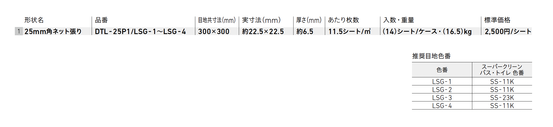| カラー | LSG-1 LSG-2 LSG-3 LSG-4 |