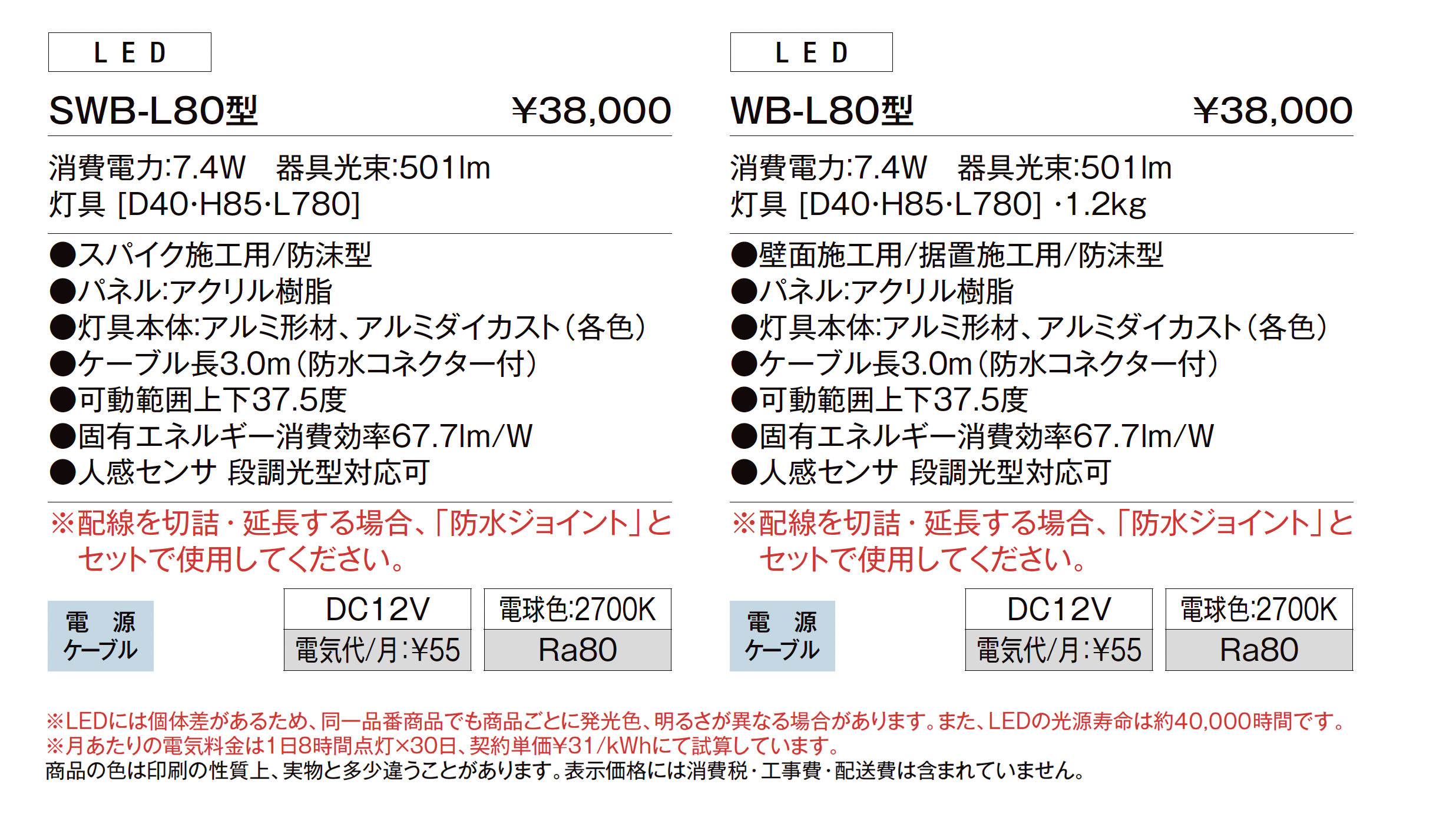 ウォールバーライト SWB-L80型、WB-L80 形【2024年版】(エクステリア総合カタログ2024-2025)