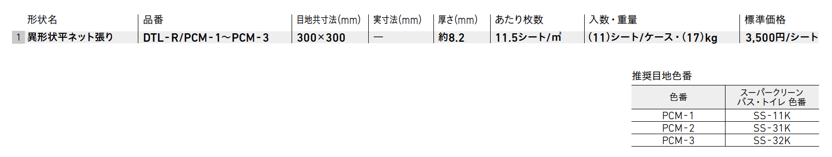 | 標準納期 | 即納対応:20㎡以下 品切れ時対応納期:納期確認 品番により生産区分が異なる場合がございます。 |