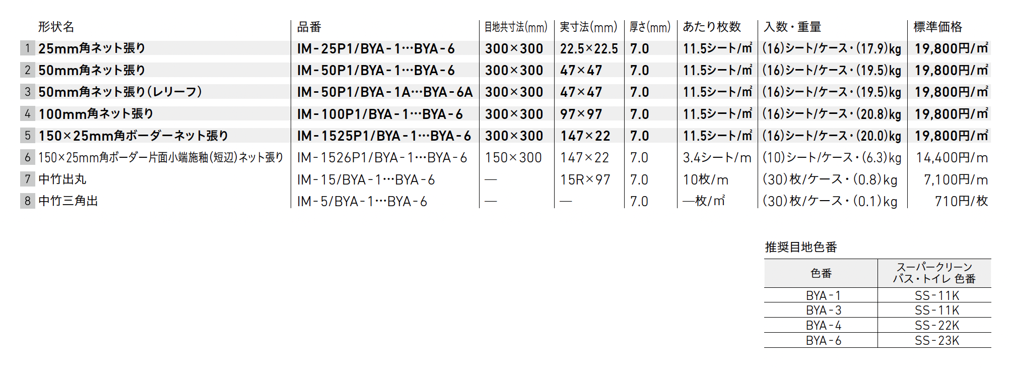 | カラー | BYA-1 BYA-3 BYA-4 BYA-6 |