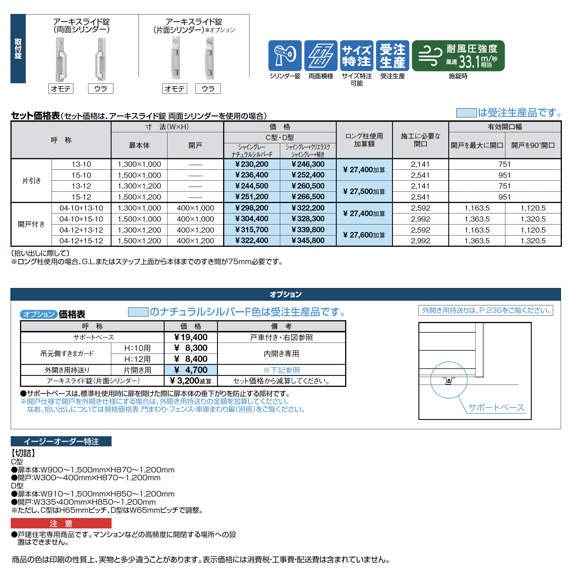 | デザイン | ガイド柱使用 横格子 片引き 開戸付き |