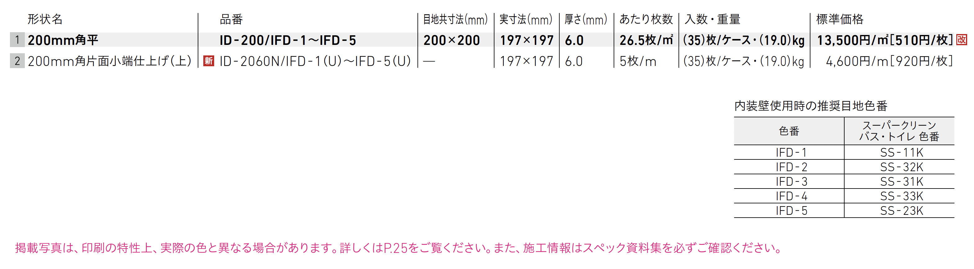 | 新旧品 | イルフォンドアルファ【2025年版】(2025タイル建材総合カタログ) |