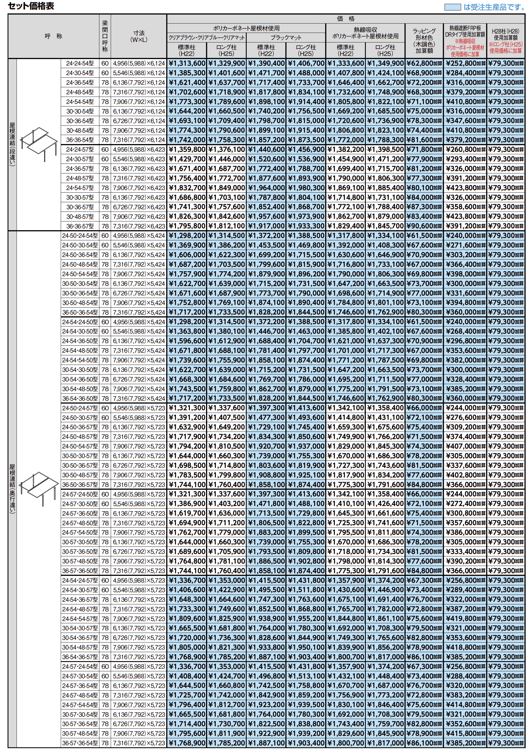 | 材質 | アルミ形材またはアルミ形材+ラッピング形材 ポリカーボネート板 熱線吸収ポリカーボネート板 熱線遮断FRP板DRタイプ |