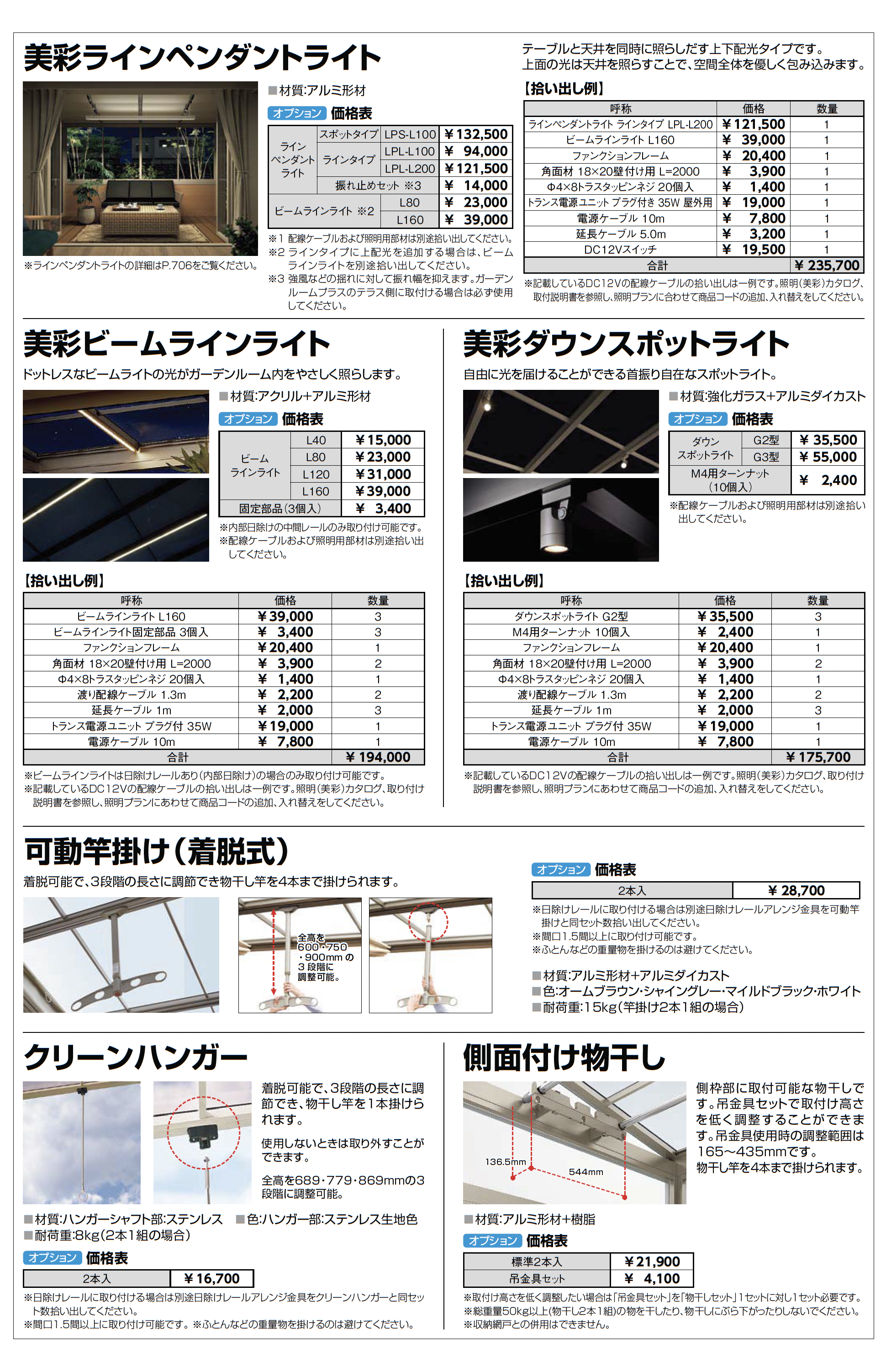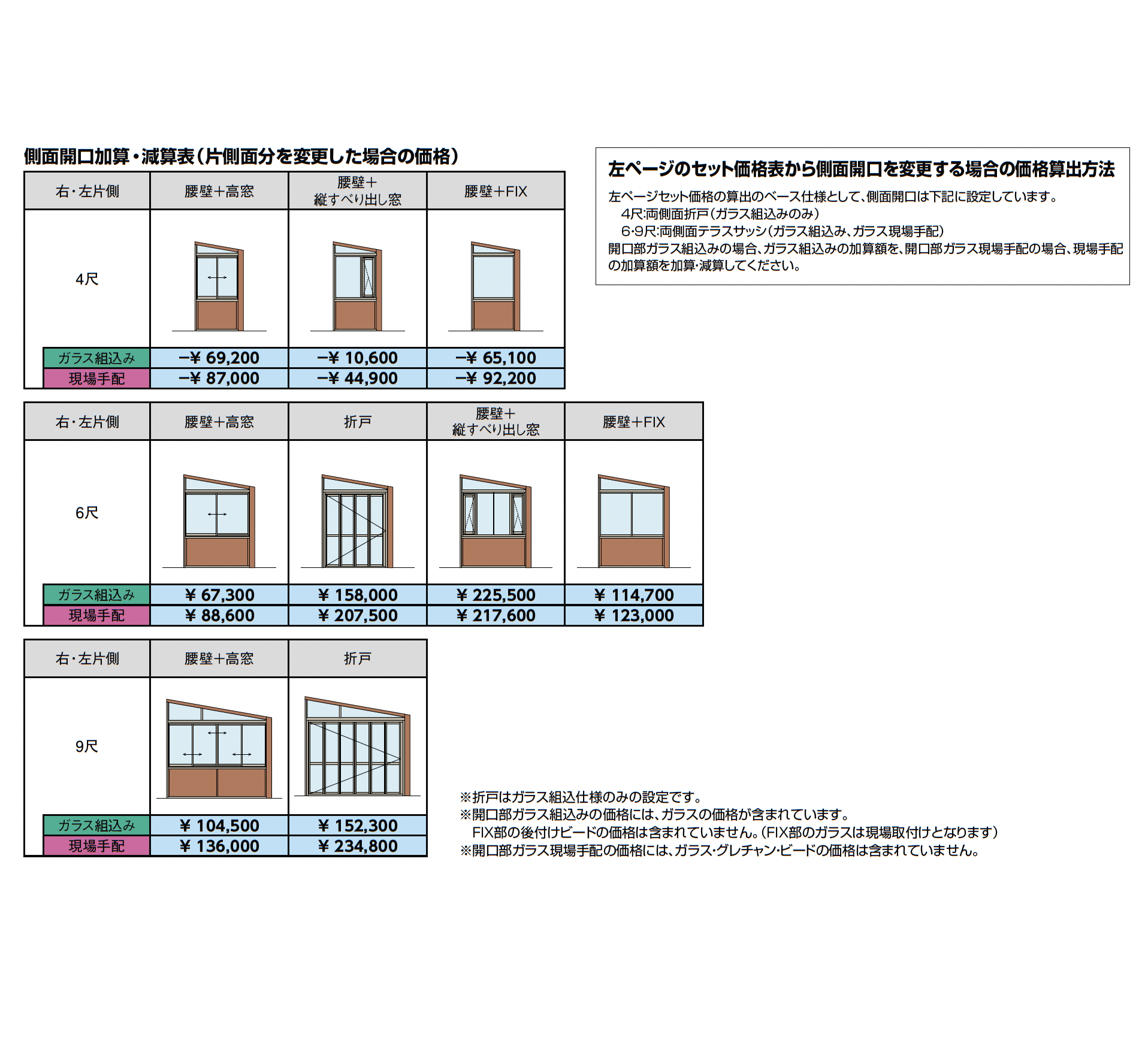 | 材質 | アルミ形材 アルミ形材+ラッピングアルミ形材 アルミ形材+アルミ樹脂複合板 ポリカーボネート板 t=2.0mm ポリカーボネート板 t=1.8mm 熱線吸収ポリカーボネート t=1.8mm 熱線吸収アクアシャインポリカーボネート板 t=1.8mm フロート板ガラス t=3.0mm フロート板ガラス t=5.0mm |