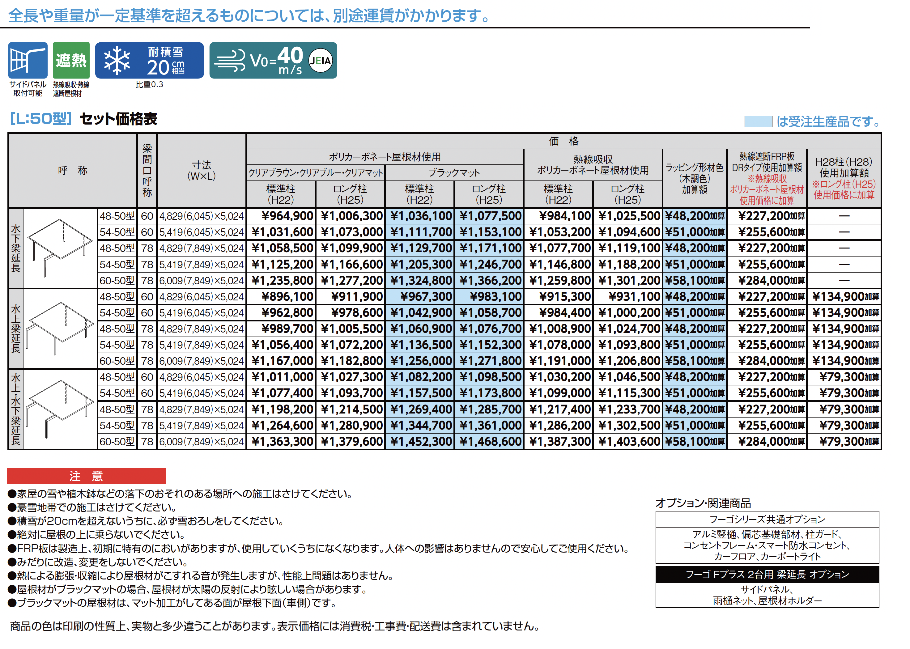 | 材質 | アルミ形材またはアルミ形材+ラッピング形材 ポリカーボネート板 熱線吸収ポリカーボネート板 熱線遮断FRP板DRタイプ |