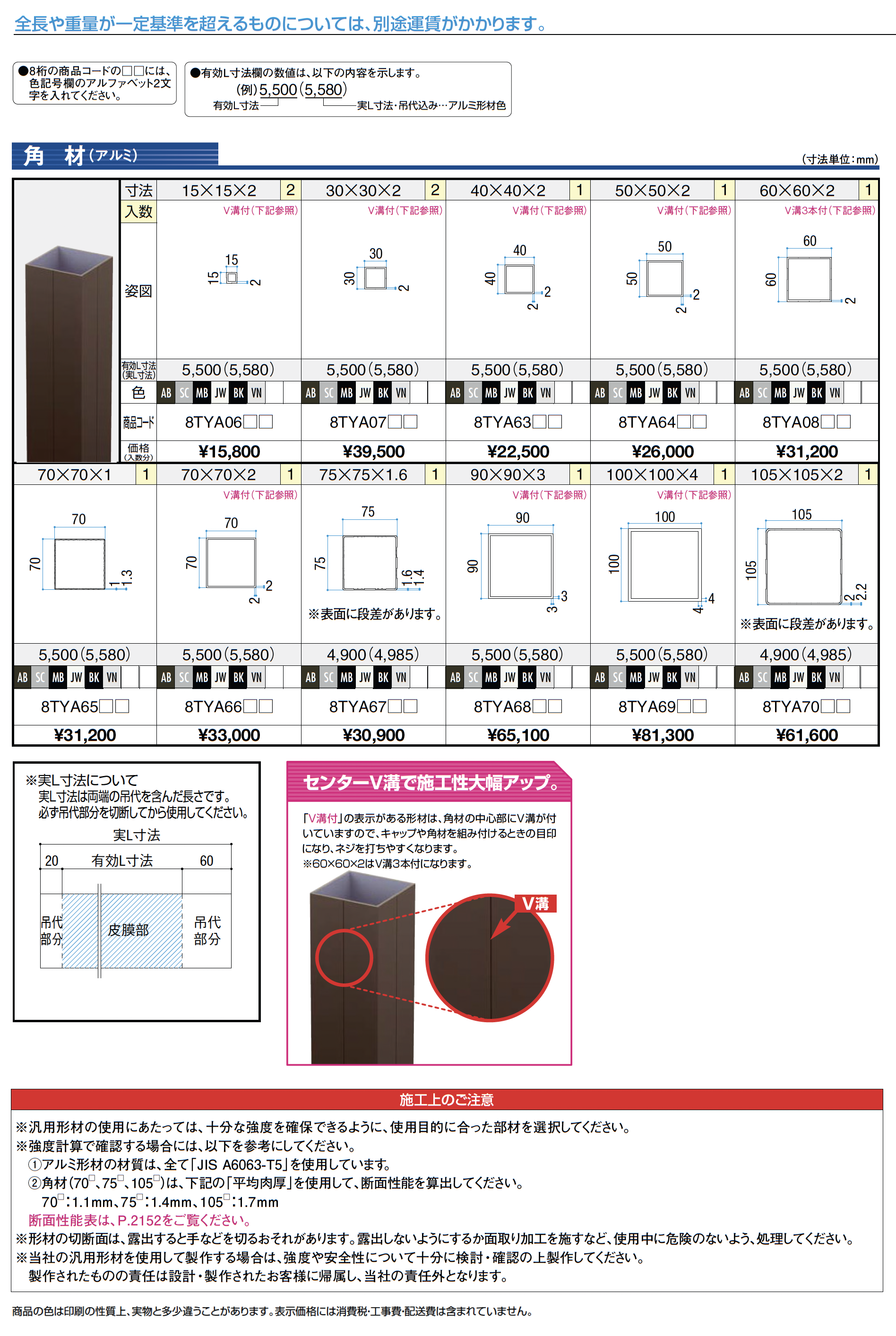 汎用形材 角材(アルミ)【2022年版】(エクステリア総合カタログ2022-2023)