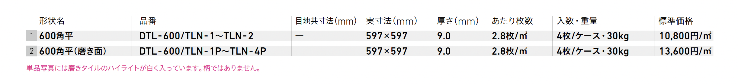 | カラー | TLN-1P TLN-2P TLN-3P TLN-4P |