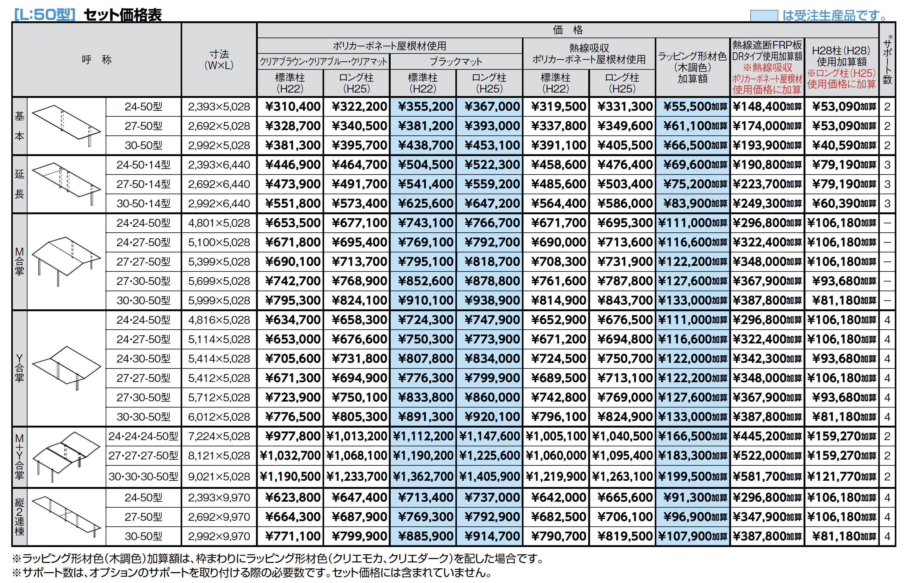 | 材質 | アルミ形材またはアルミ形材+ラッピング形材 ポリカーボネート板 熱線吸収ポリカーボネート板 熱線遮断FRP板DRタイプ アルミ樹脂複合板 |