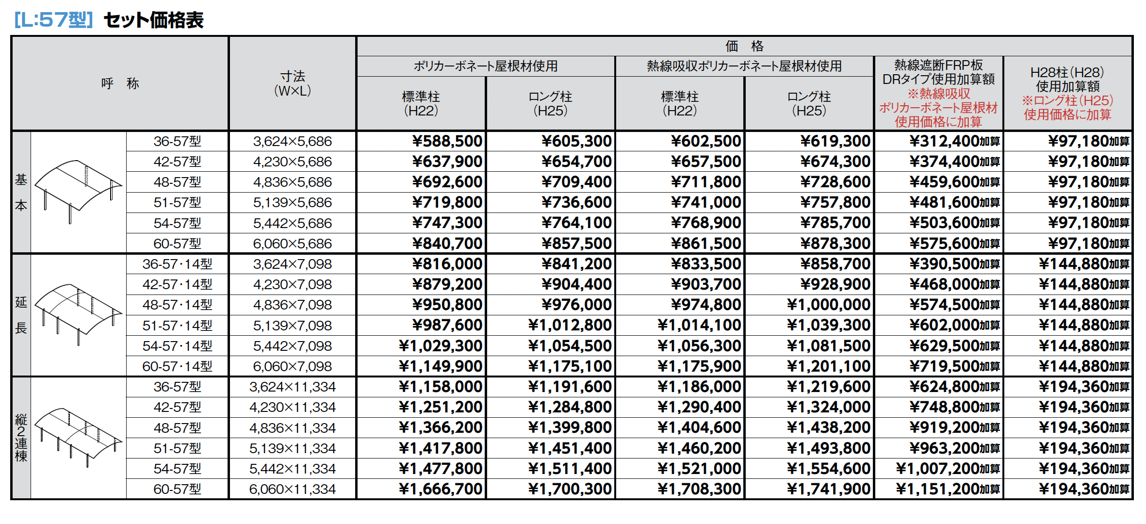 | 材質 | アルミ形材 ポリカーボネート板 熱線吸収ポリカーボネート板 熱線遮断FRP板DRタイプ アルミ樹脂複合板 |