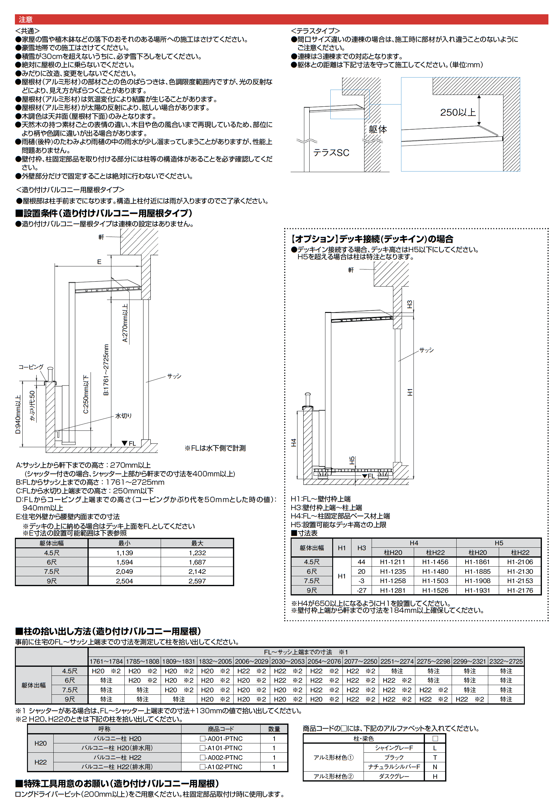 | デザイン | テラス・1階用 フラット(F型) バルコニー(柱あり) |