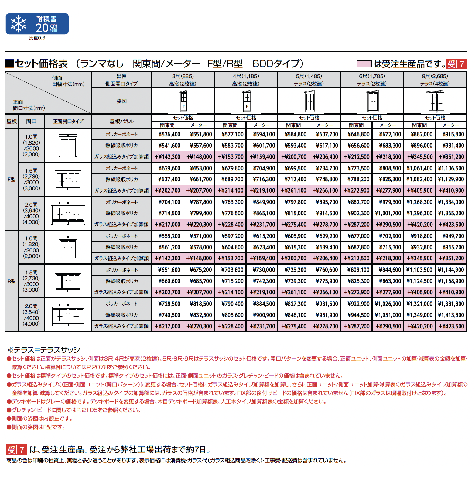 | 強度 | 耐積雪20cm相当 耐積雪50cm相当 耐積雪100cm相当 |