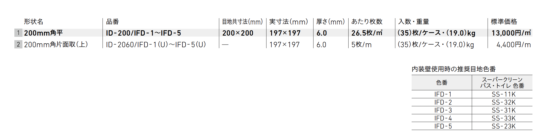 | カラー | IFD-1 IFD-2 IFD-3 IFD-4 IFD-5 |