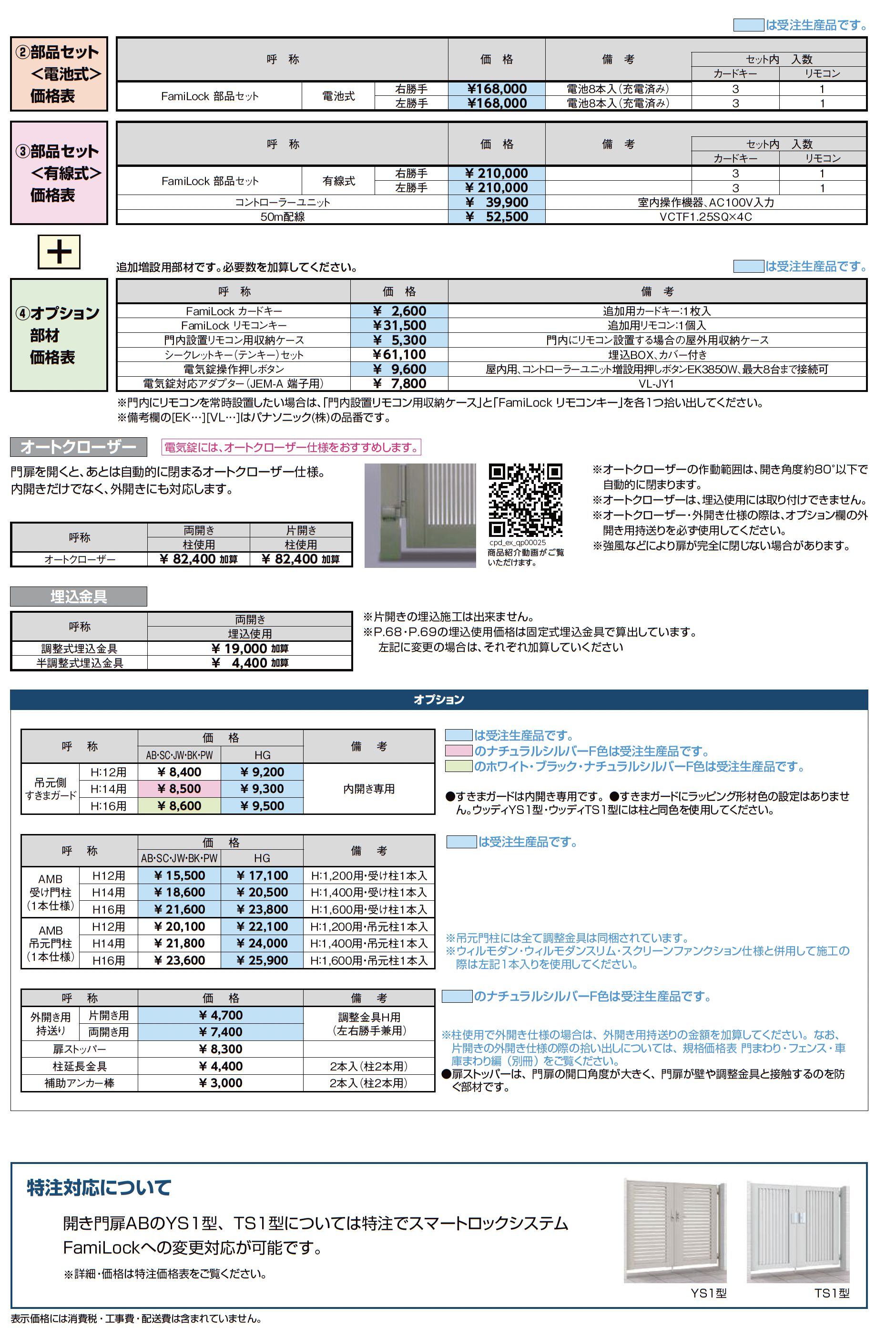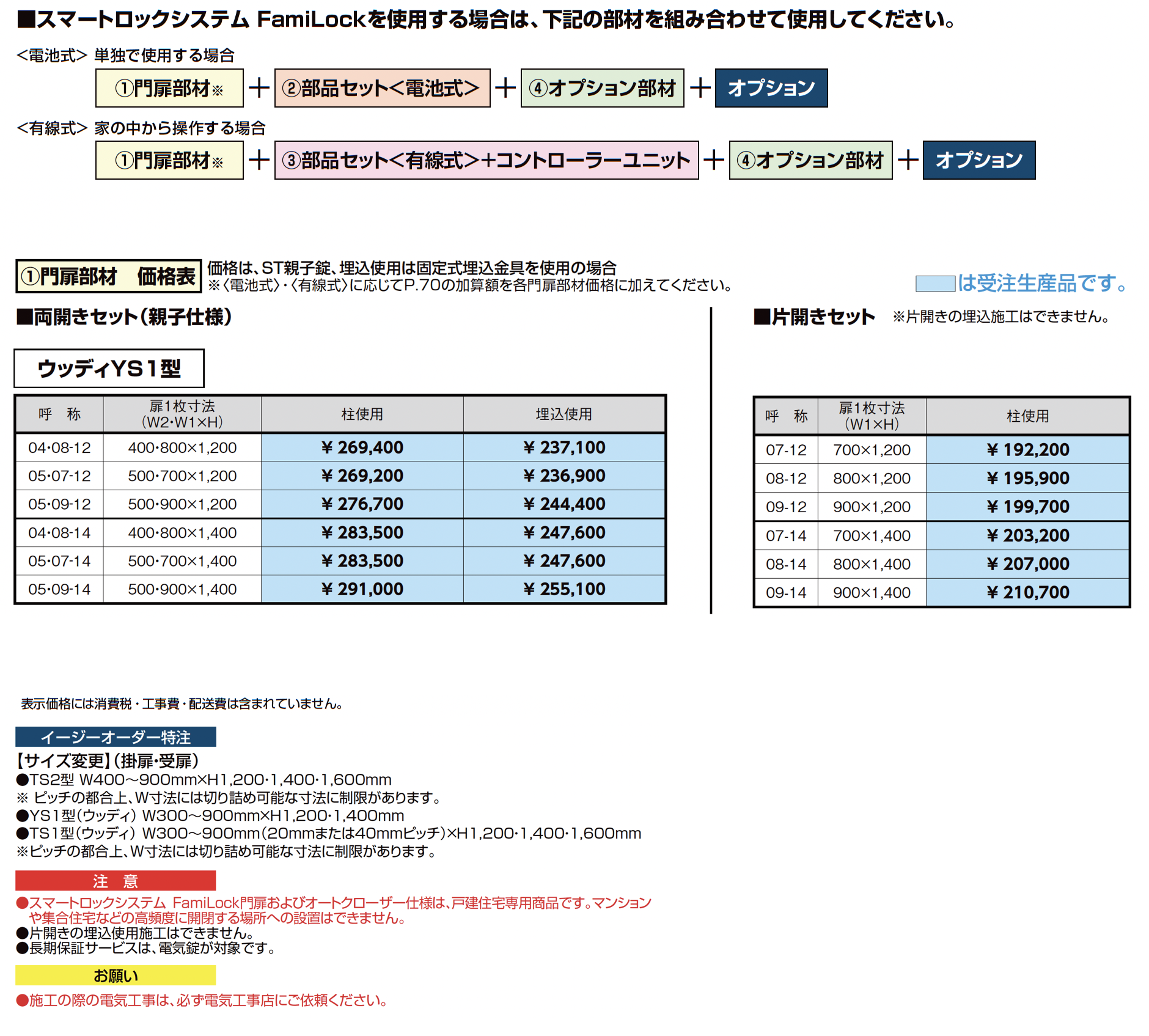 | デザイン | 両開き親子仕様(柱使用・埋込使用) 片開き(柱使用) |
