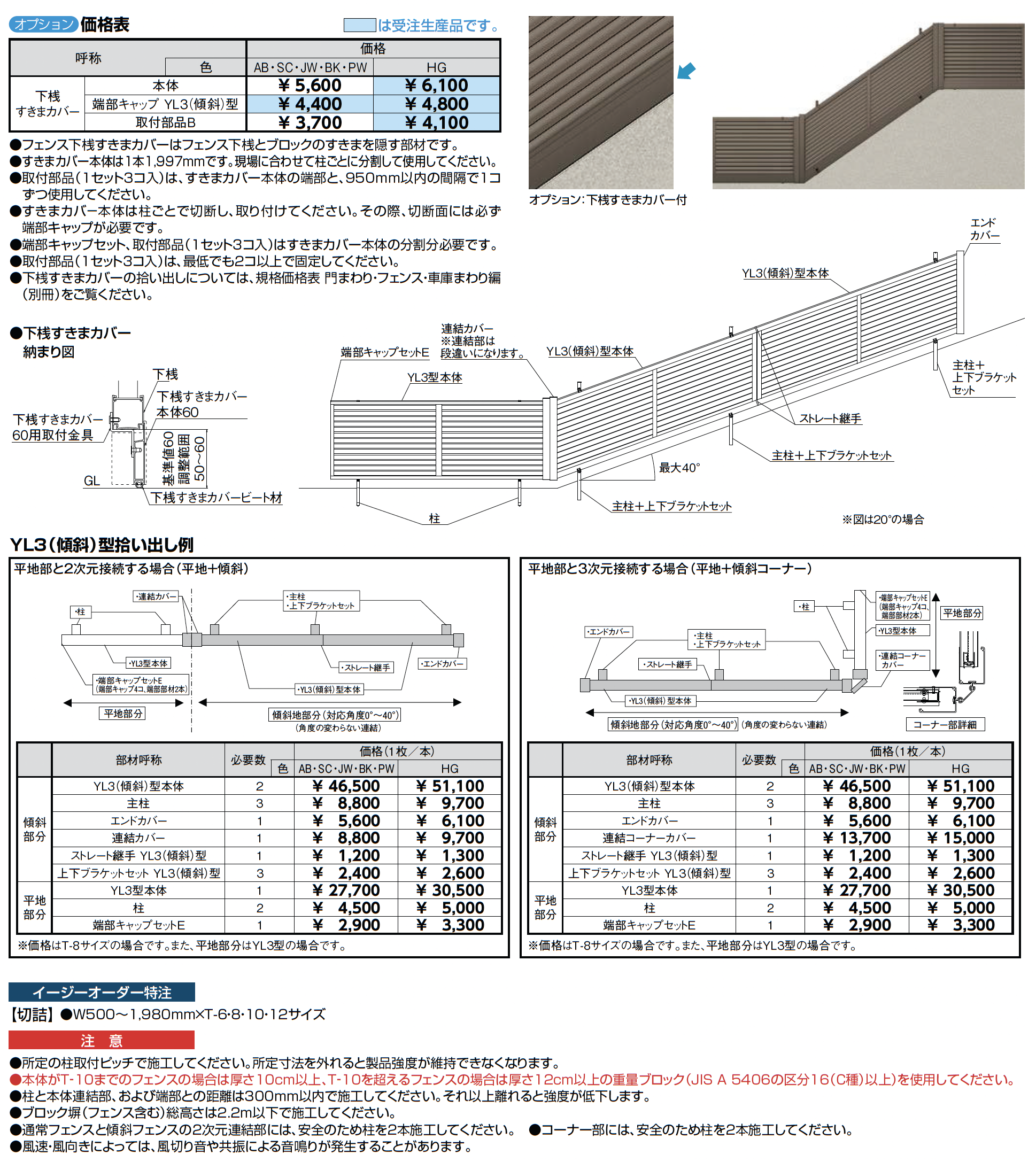 フェンスAB YL3(傾斜)型(横ルーバー)【2023年版】(エクステリア総合カタログ2023-2024)