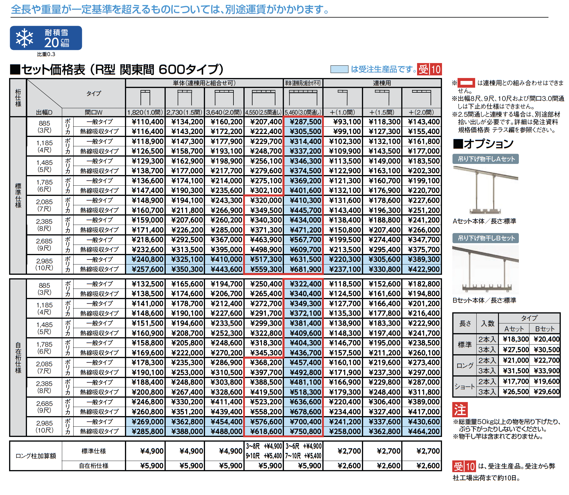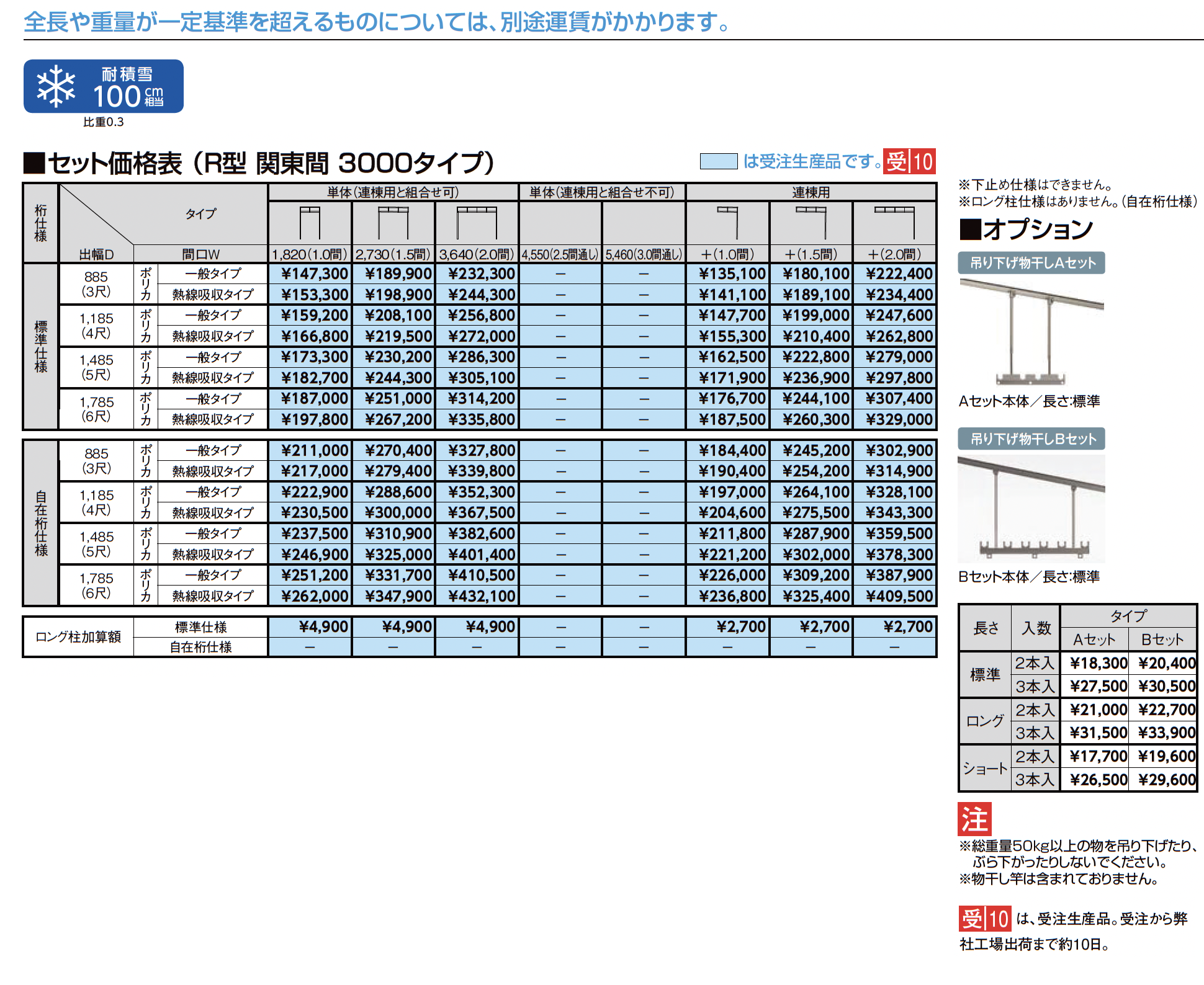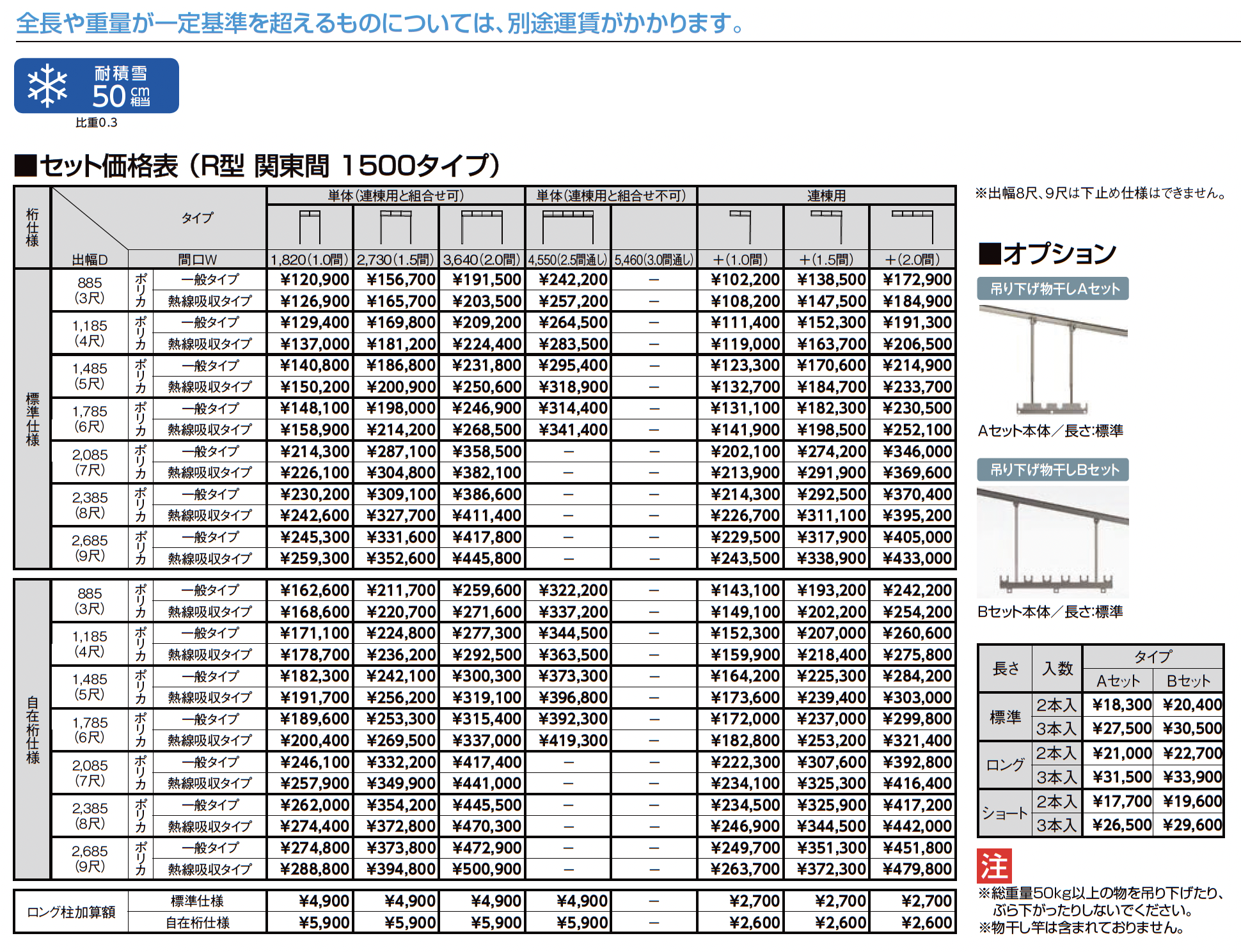 | 強度 | 耐積雪20cm相当 耐積雪50cm相当 耐積雪100cm相当 |
