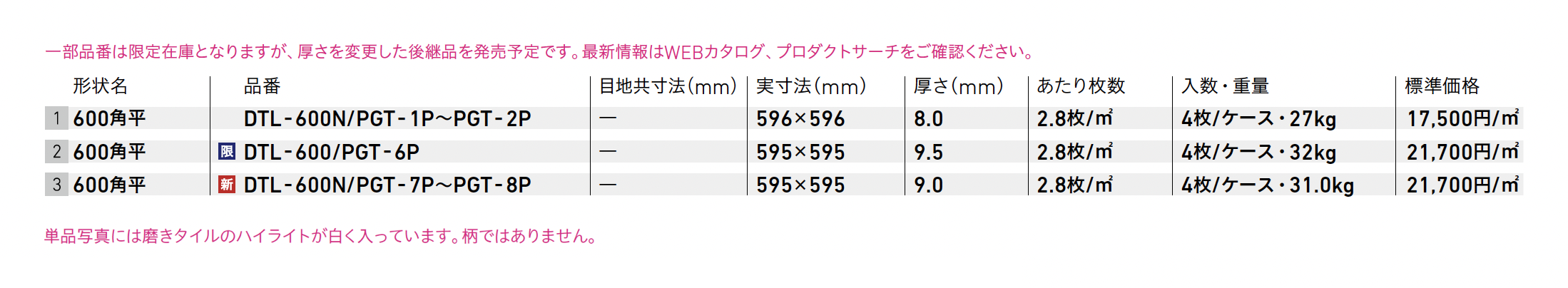 | 標準納期 | 即納対応:50㎡以下、100㎡以下(品番により) 品切れ時対応納期:納期確認 品番により生産区分が異なる場合がございます。 |