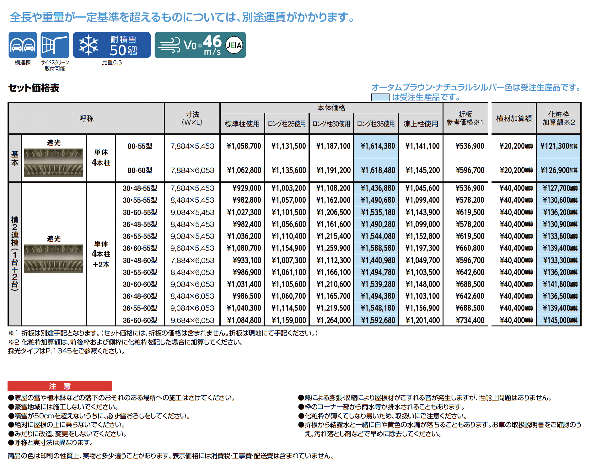 | 強度 | 耐積雪50cm相当 基準風速V0=46m/s |
