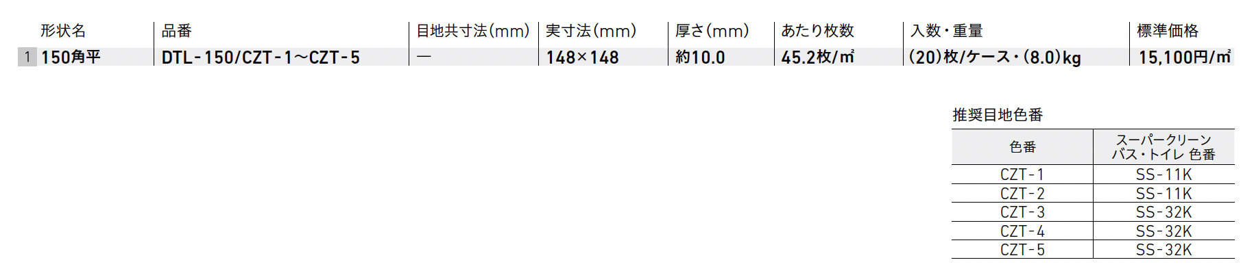 | カラー | CZT-1 CZT-2 CZT-3 CZT-4 CZT-5 |