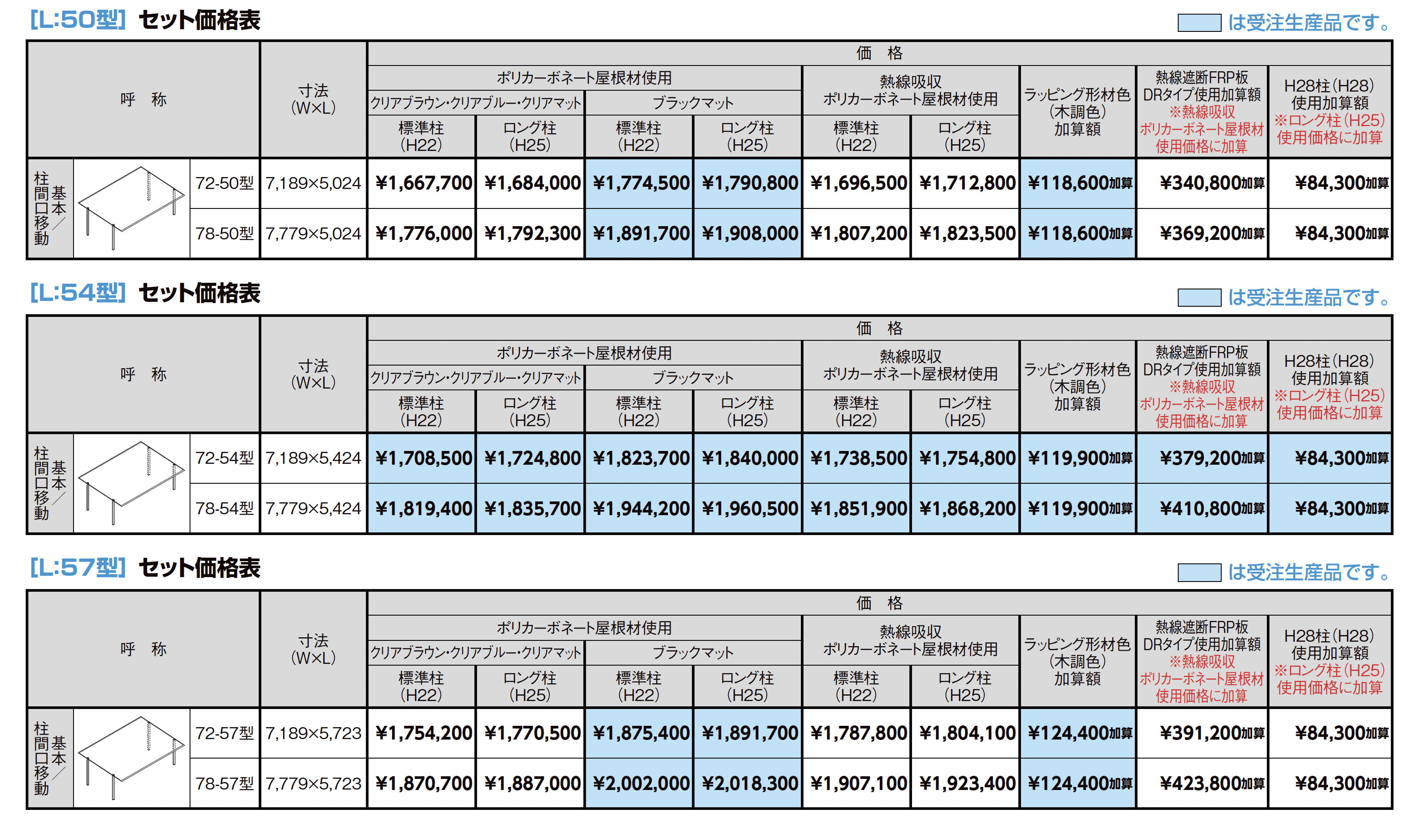 | 材質 | アルミ形材またはアルミ形材+ラッピング形材 ポリカーボネート板 熱線吸収ポリカーボネート板 熱線遮断FRP板DRタイプ |