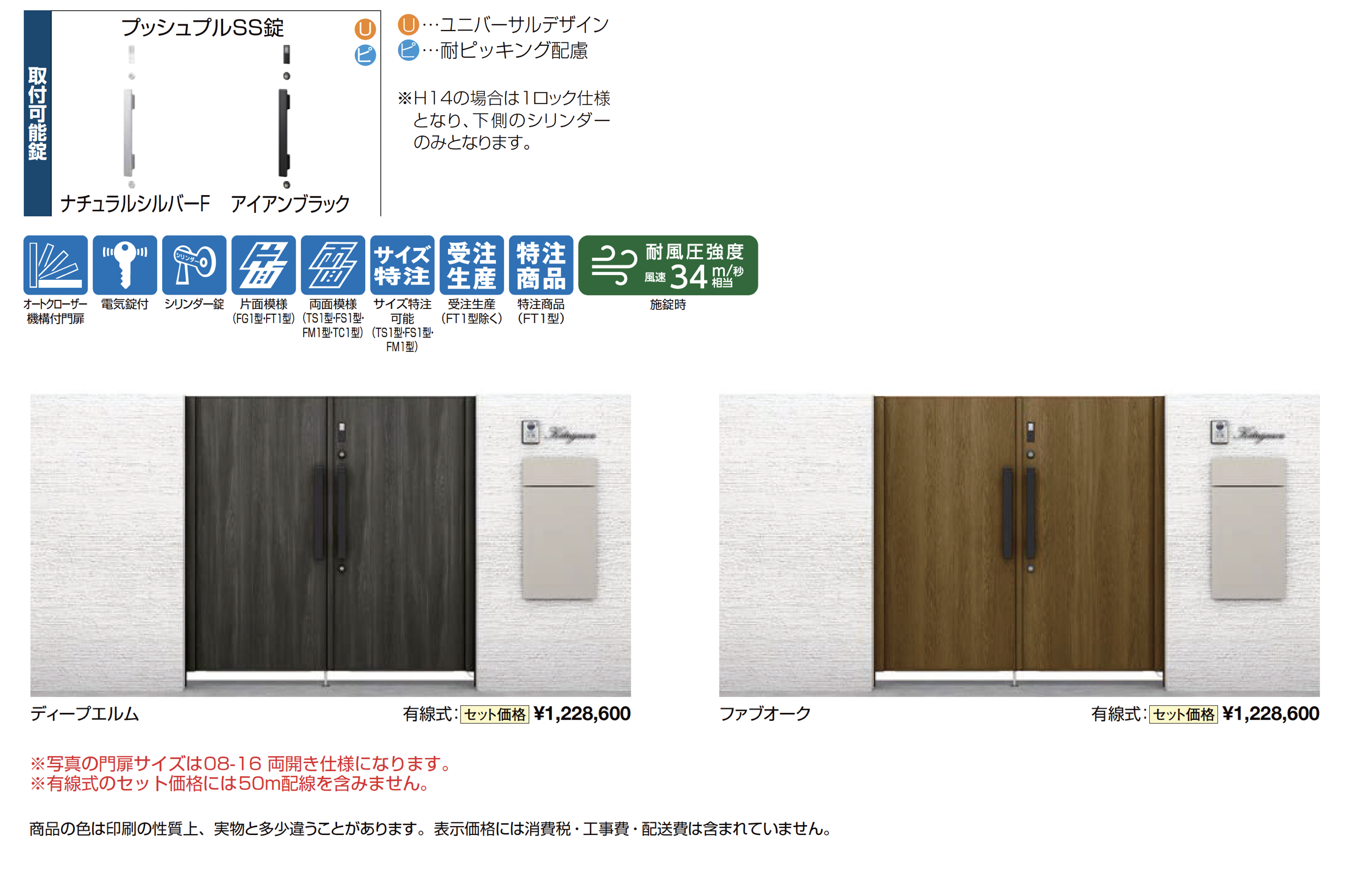 | デザイン | 両開き(標準門柱使用・埋込使用・親子仕様) 片開き(標準門柱使用・埋込使用) |