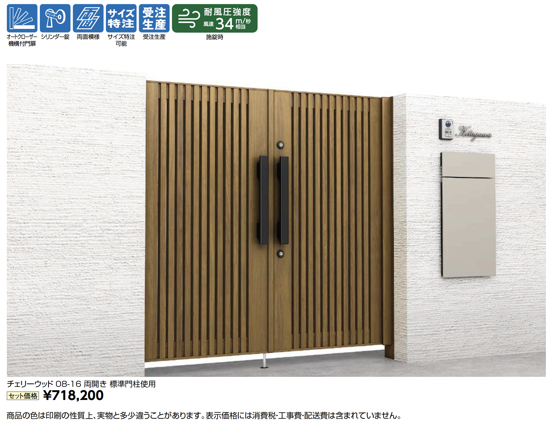 | デザイン | 両開き(標準門柱使用・埋込使用・親子仕様・オートクローザー仕様) 片開き(標準門柱使用・埋込使用・親子仕様・オートクローザー仕様) |
