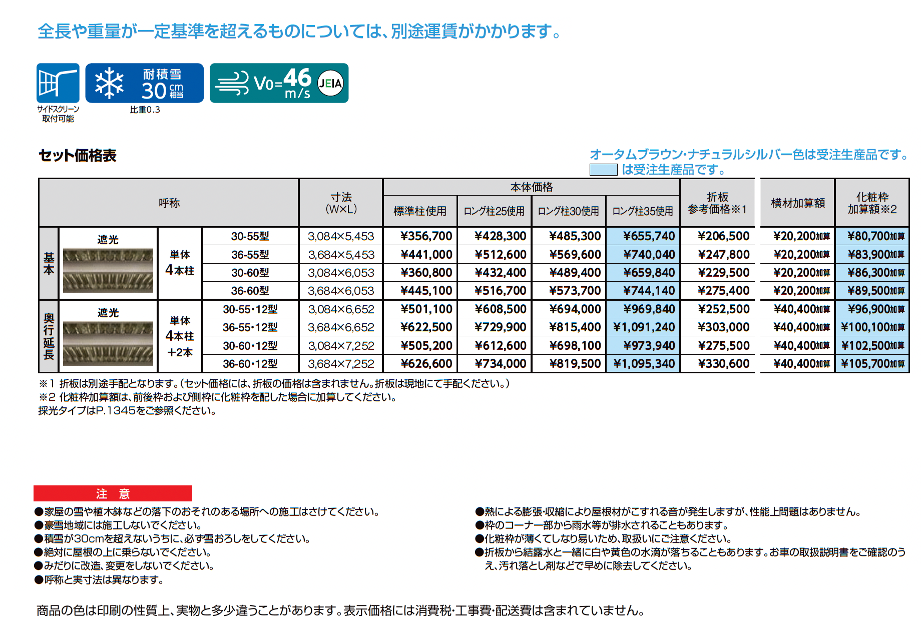 | 強度 | 耐積雪30cm相当 基準風速V0=46m/s |