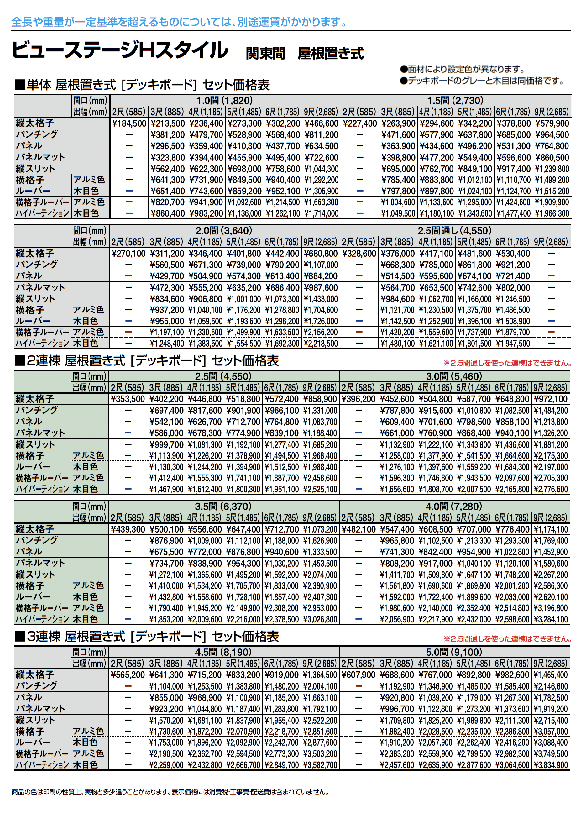 | 新旧品 | ビューステージ Hスタイル 関東間 屋根置き式【2025年版】(エクステリア総合カタログ2025-2026) |