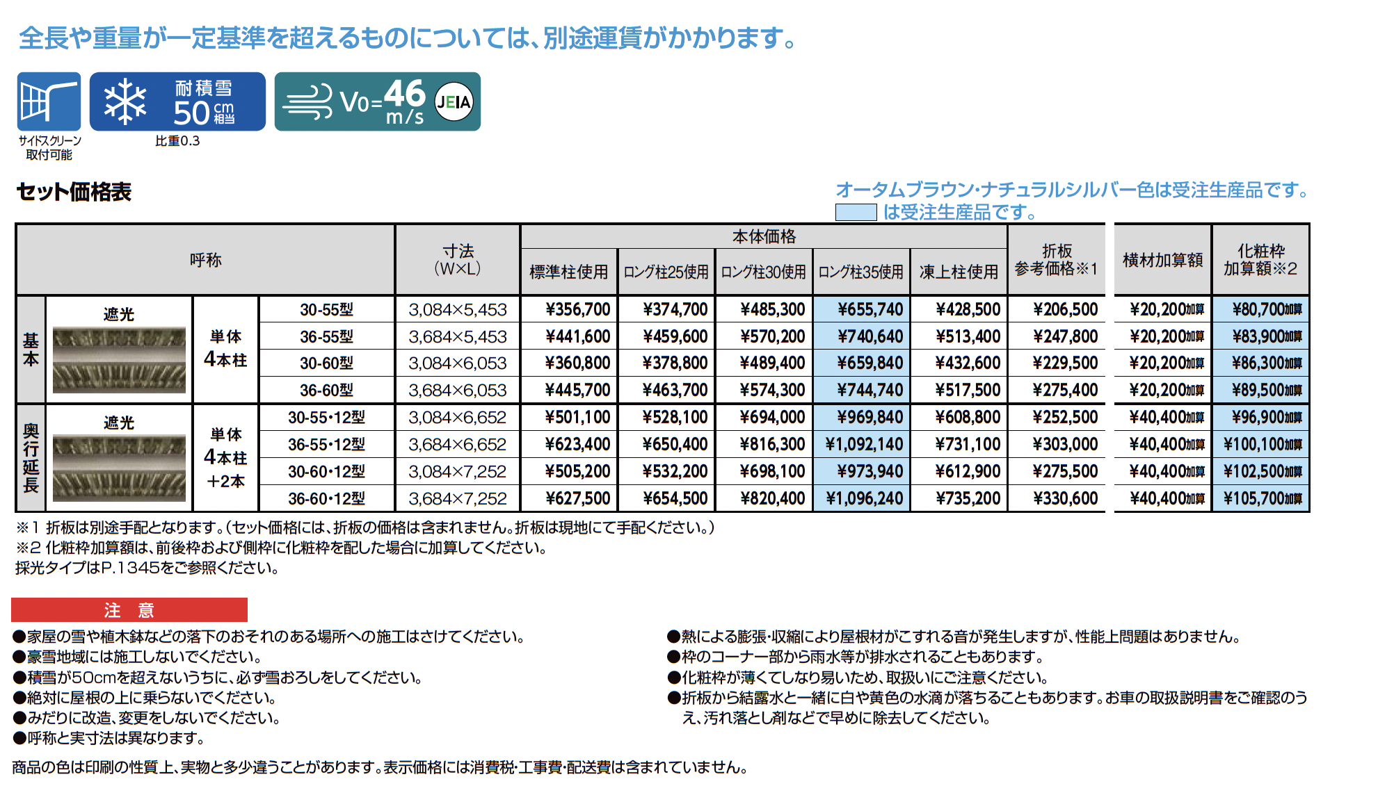 | 強度 | 耐積雪50cm相当 基準風速V0=46m/s |