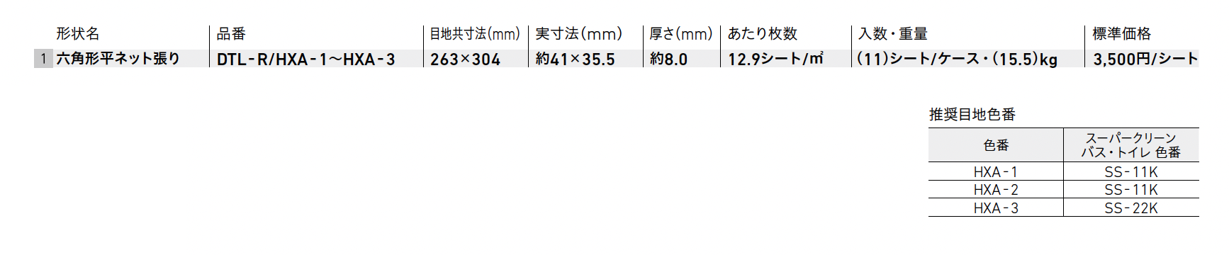 | 標準納期 | 即納対応:20㎡以下 品切れ時対応納期:納期確認 品番により生産区分が異なる場合がございます。 |