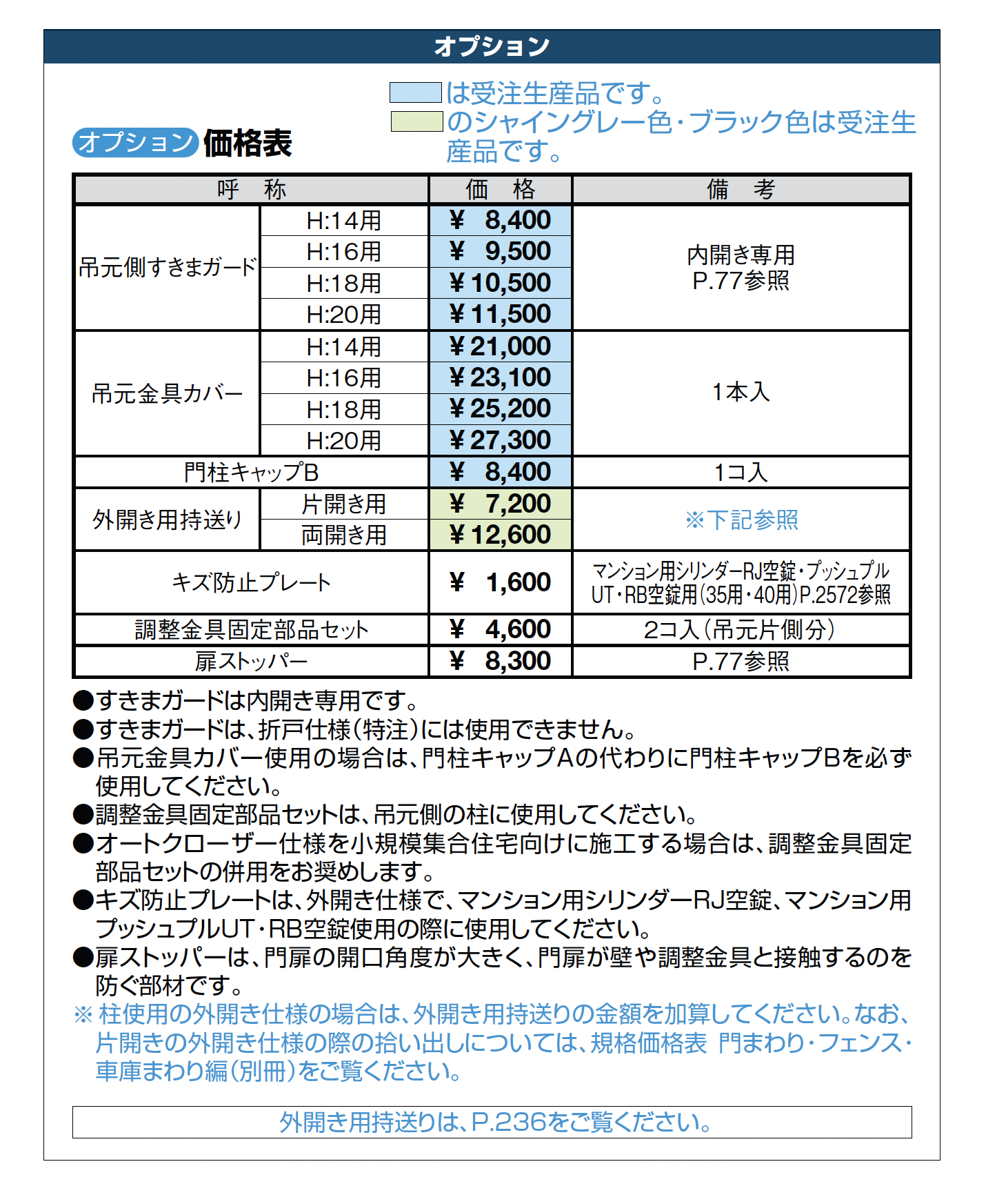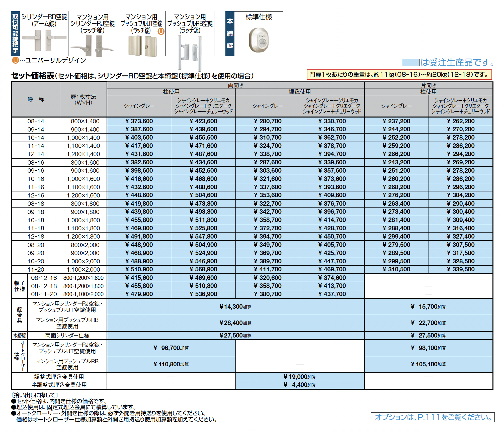 | デザイン | 両開き 両開き・柱使用 両開き・埋込使用 両開き親子仕様・柱使用 両開き親子仕様・埋込使用 片開き 片開き・柱使用 目隠し・ルーバー 親子 |