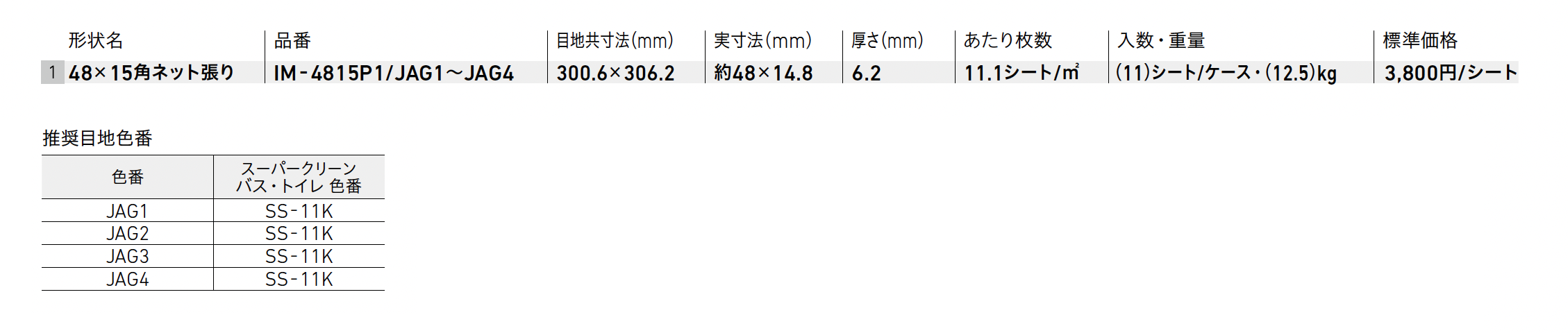 | 標準納期 | 即納対応:30㎡以下 品切れ時対応納期:納期確認 品番により生産区分が異なる場合がございます。 |