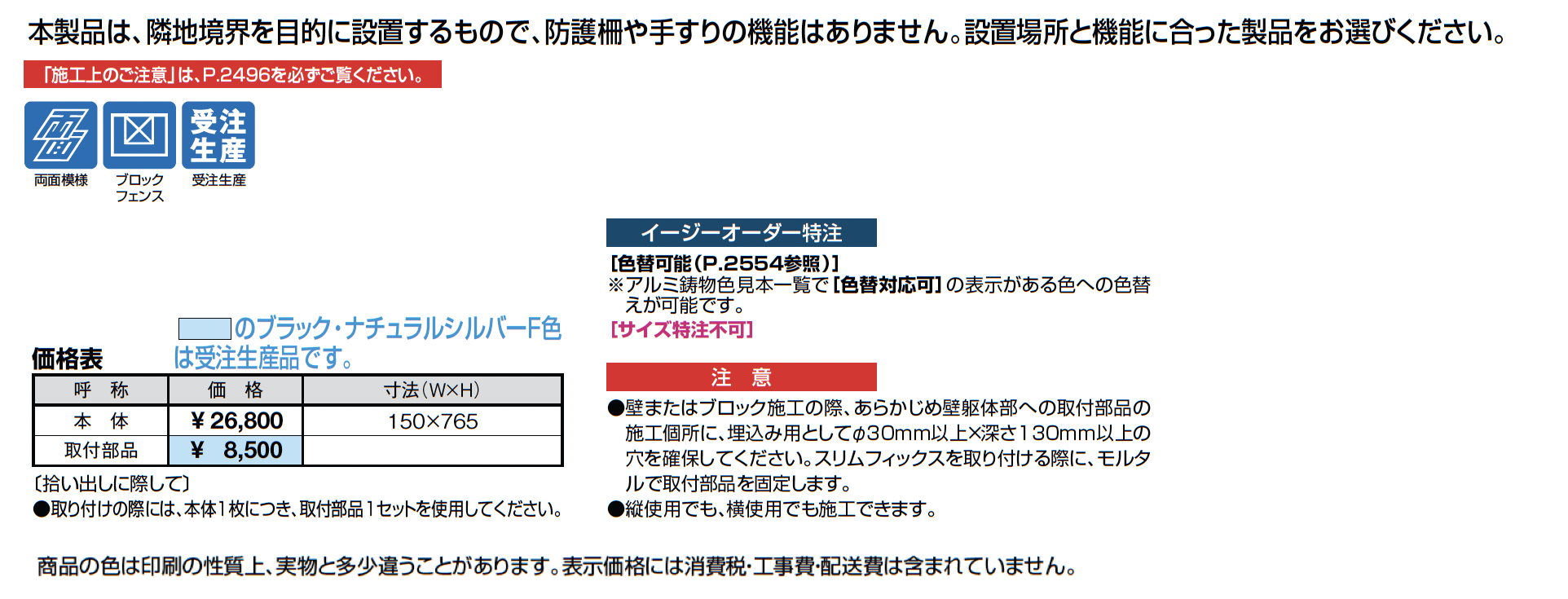 アーキキャストスリムフィックスフェンス【2023年版】(エクステリア総合カタログ2023-2024)