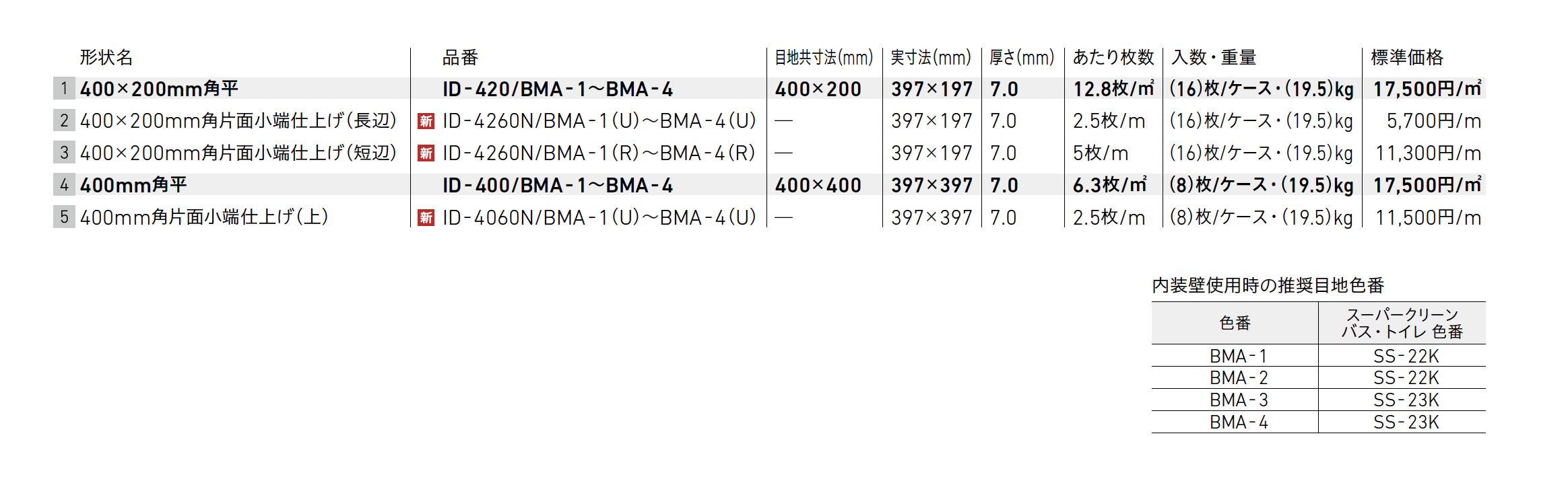 | カラー | BMA-1 BMA-2 BMA-3 BMA-4 |