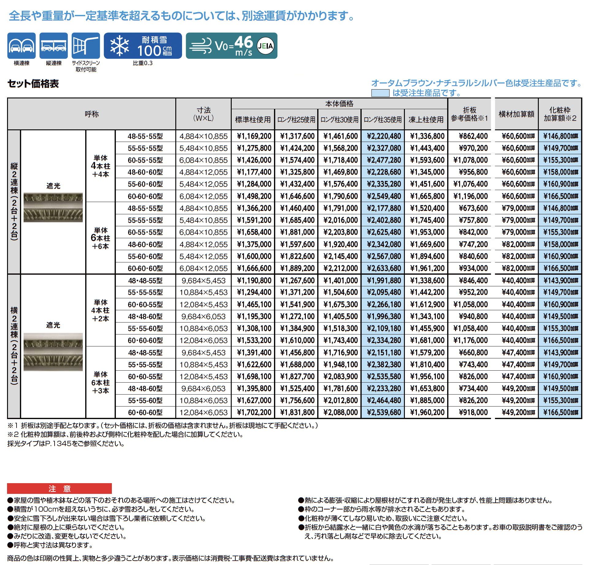 | 強度 | 耐積雪100cm相当 基準風速V0=46m/s |