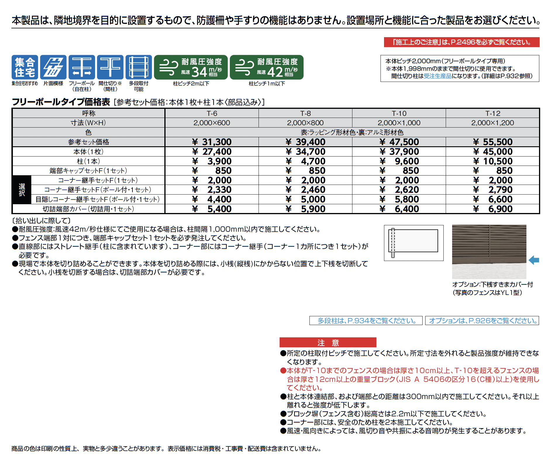 | 強度 | 耐風圧強度風速34m/秒相当 耐風圧強度風速42m/秒相当 |
